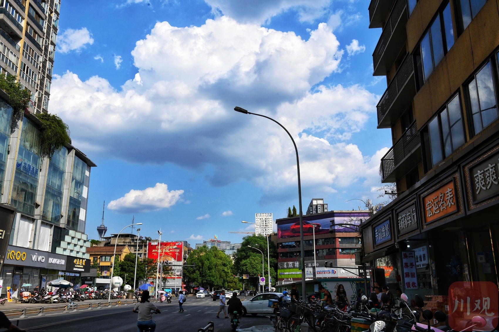4月26日下午,迎风变幻的浓积云慢慢聚集在成都市区上空。在蓝天的衬托和阳光的勾勒下,云朵如同“动漫云”一般美得触手可及,这是成都四月天的美景。