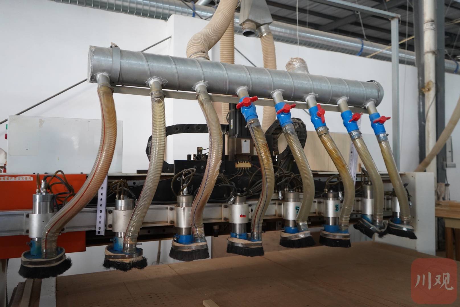 成都千树家具有限责任公司木工车间内,一排排数十米长的银色管道,连着家具生产制作机器设备。这些管道装的不是水,而是粉尘。“吸尘后,都集中在中央吸尘器进行处理。”顺着该企业行政负责人胡一梅手指方向,车间外不到五米处,一个银色的庞然大物映入眼帘,上面标注是中央吸尘器。