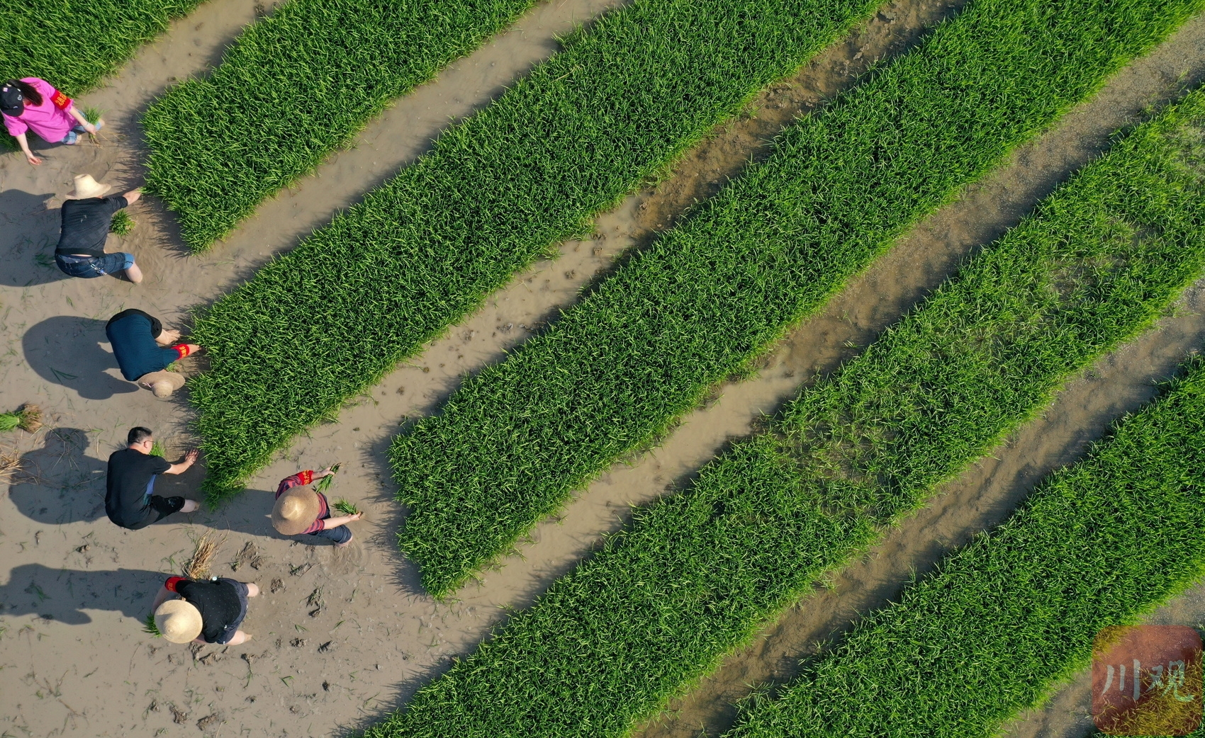 4月26日,在南充市营山县东升镇玉帝新村,当地党员志愿者帮助缺少劳动力家庭插秧。连日来,活跃在东升镇的党员志愿者服务队成为了稻田里一道靓丽的风景线。