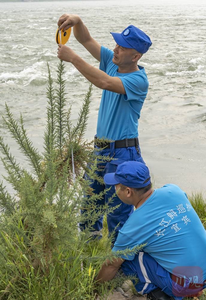 4月27日早晨8:00,宜宾江安长江鲟协助巡护队副队长肖玉南和队员李基奎就驾驶巡逻艇从码头出发了,他们要赶在汛期来临前,对珍稀濒危物种疏花水柏枝的生长状况进行监测。