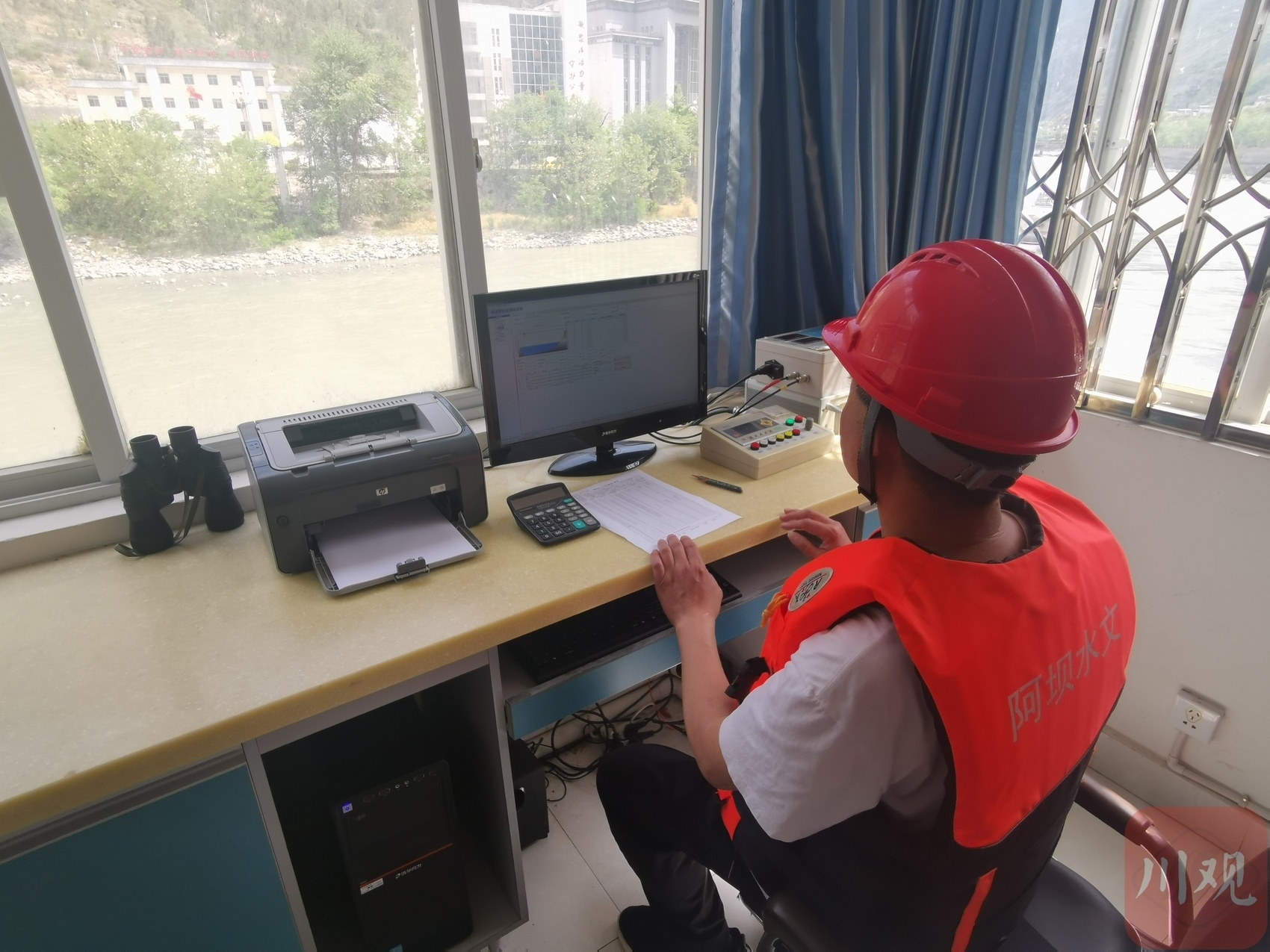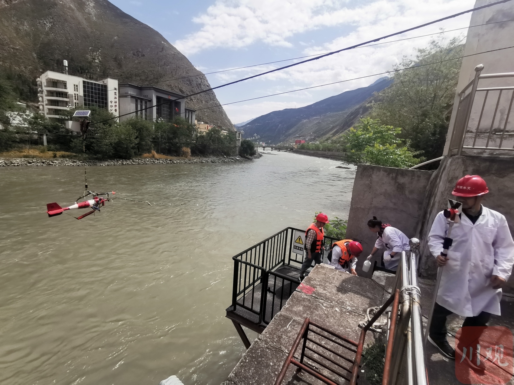 随着阿坝水文中心主任杨小波一声令下,水文监测组、水情报讯组、水质水生态检测组和后勤保障组等4路小分队跑步来到江边的工作平台,立即开展水文测报工作。