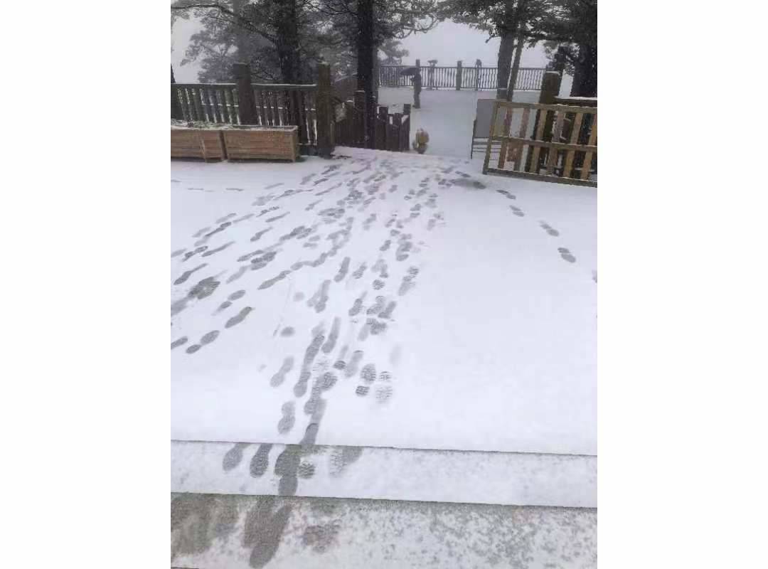 据现场工作人员介绍,目前积雪最厚的地方已达10cm左右,雪还没有停的意思,打雪仗、堆雪人都不是问题,“今天刚好是‘五一’小长假放假的第一天,山上的游客也比平时多,遇到降雪,游客直呼运气太好”。