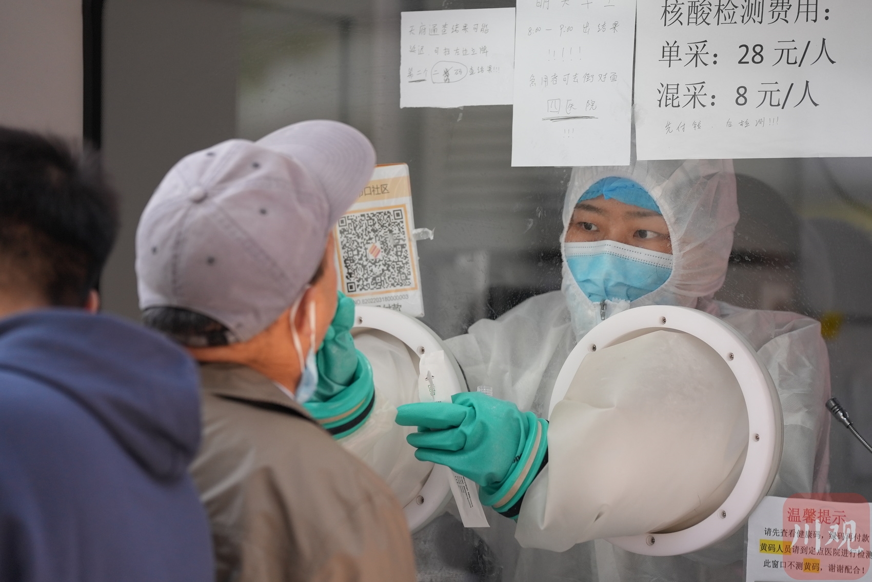 5月1日是2022年“五一”小长假第二天,不少市民前往设在成都春熙路的核酸采样方舱,“顺路”做个检测。