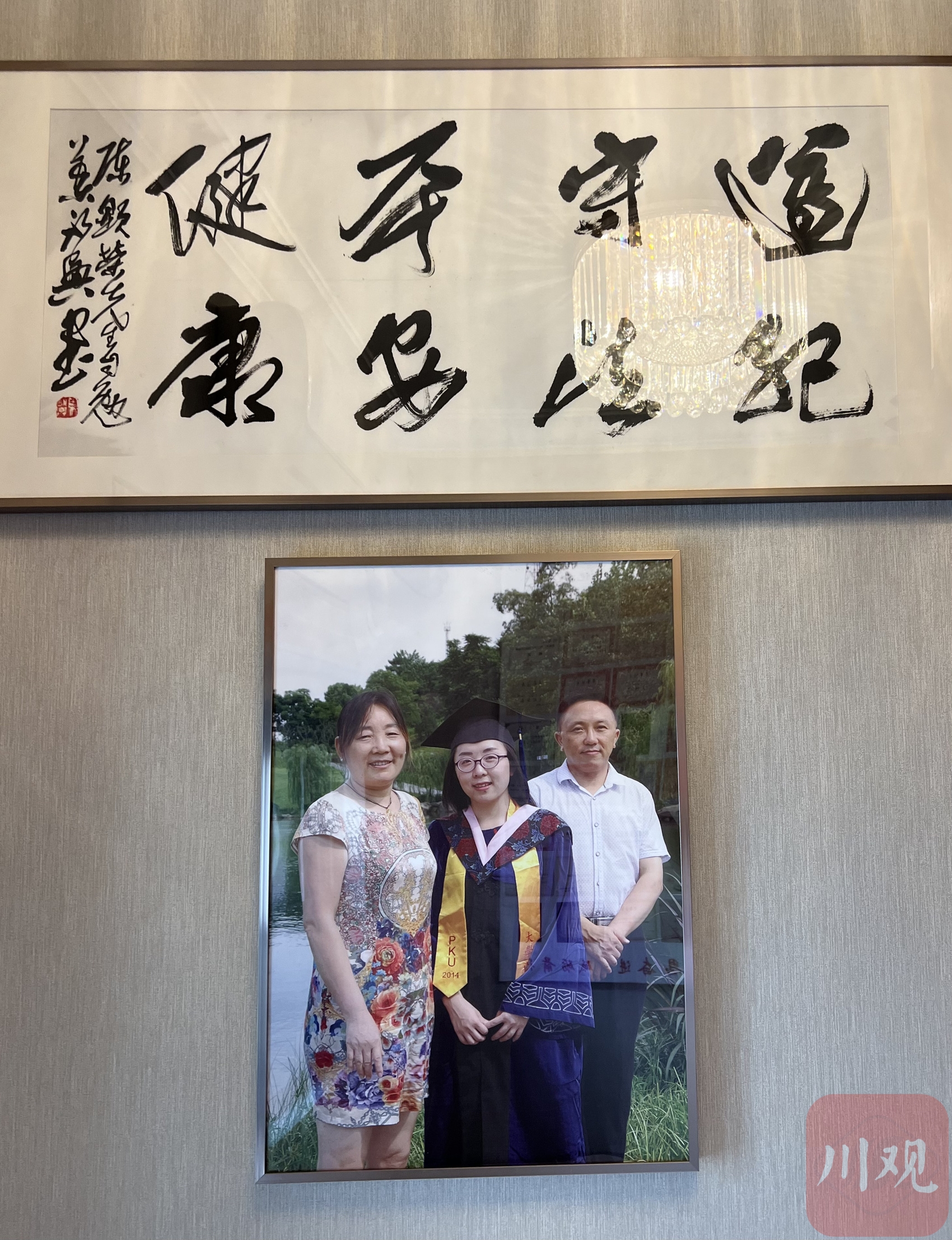 在陈显荣的书房里,四川在线记者还看到了家风建设的多个“巧思”。右墙上,挂着陈显荣和妻子工作中的照片,以及女儿的历届毕业照;书架上,一沓荣誉证书整齐摆放;往左看,“遵纪守法、平安健康”的家训映入眼帘;家训对面的墙壁则挂了一个半身高的展板,上面展示了一家人三十余张奖状……