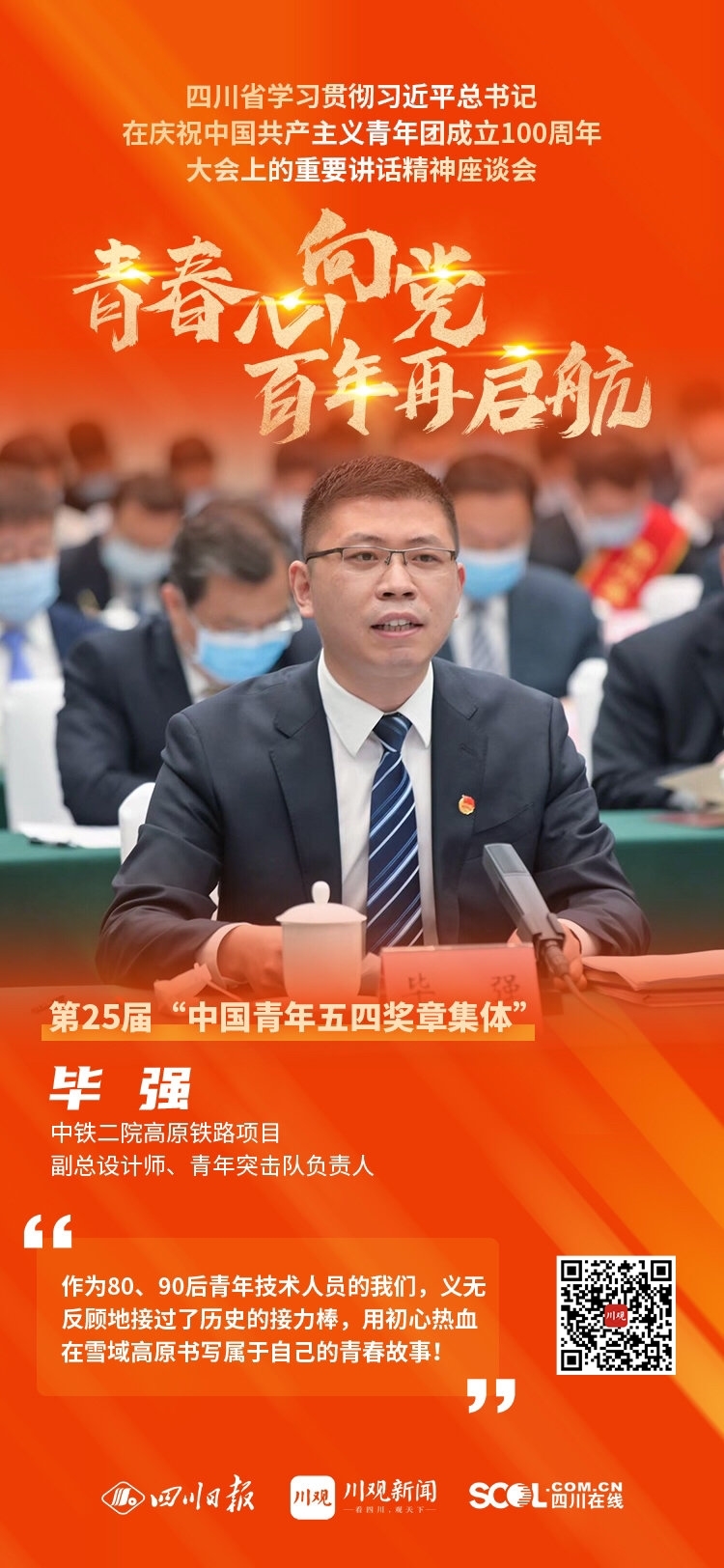中铁二院作为高原铁路勘察设计总体牵头单位,第一时间落实党中央和省委、省政府要求,成立了高原铁路项目青年突击队。十年间,这支以团员青年为主的突击队伍,从寥寥几人已壮大成有着292人、平均年龄33岁的高素质青年技术团队。冰天雪地、旌旗翻卷,雪域高原便是我们奋战的疆场;测绘勘探、建筑土建,勘察设计就是我们拼搏的战役。我们发扬“开路先锋”精神,用青春热血浇筑了高原天路,向党和人民交上了一份满意的答卷,并在去年荣获了第25届“中国青年五四奖章集体”称号。借此机会,我向大家汇报几代二院人夙兴夜寐、日夜守望的新时代高原天路的有关情况。