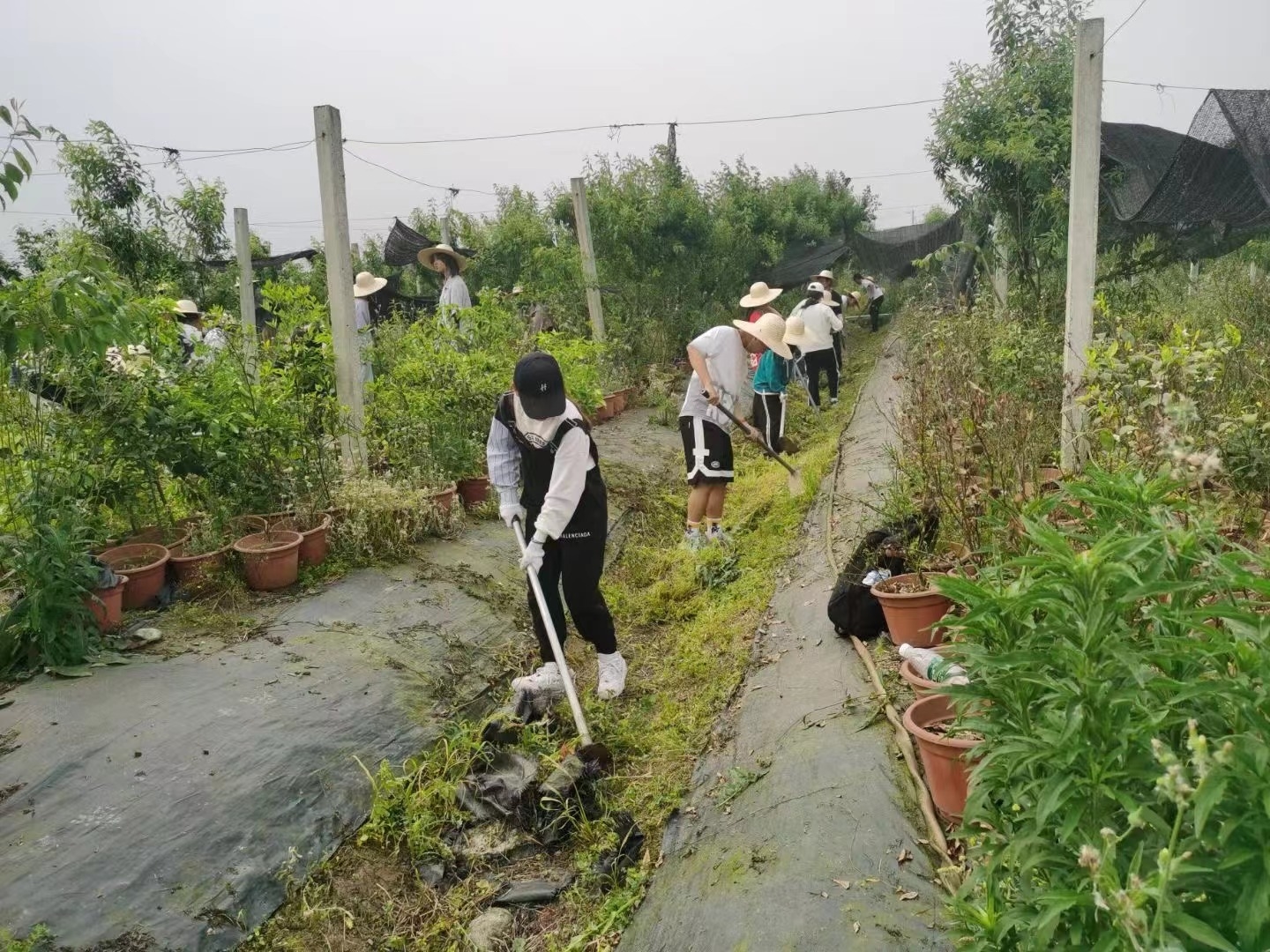 学生们在基地劳动。