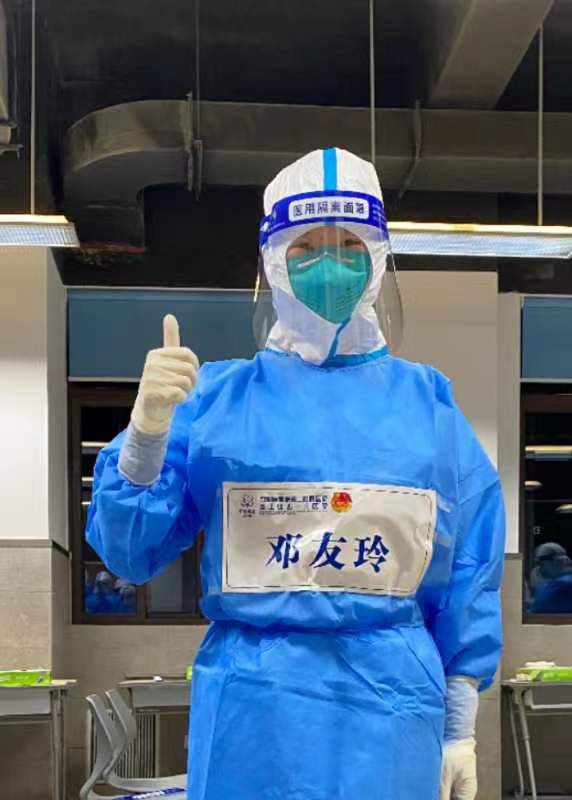作为队伍里年龄最小的队员,同事们心疼她,常到她所在区域来询问她有没有不会做的工作,查看她的衣服鞋套有没有破损,关心她身体有没有不舒服。在“前辈”们的指导下,邓友玲在方舱内一遍遍巡查、记录、交流,就像上了发条一样,根本停不下来。渐渐地,她进入了状态。