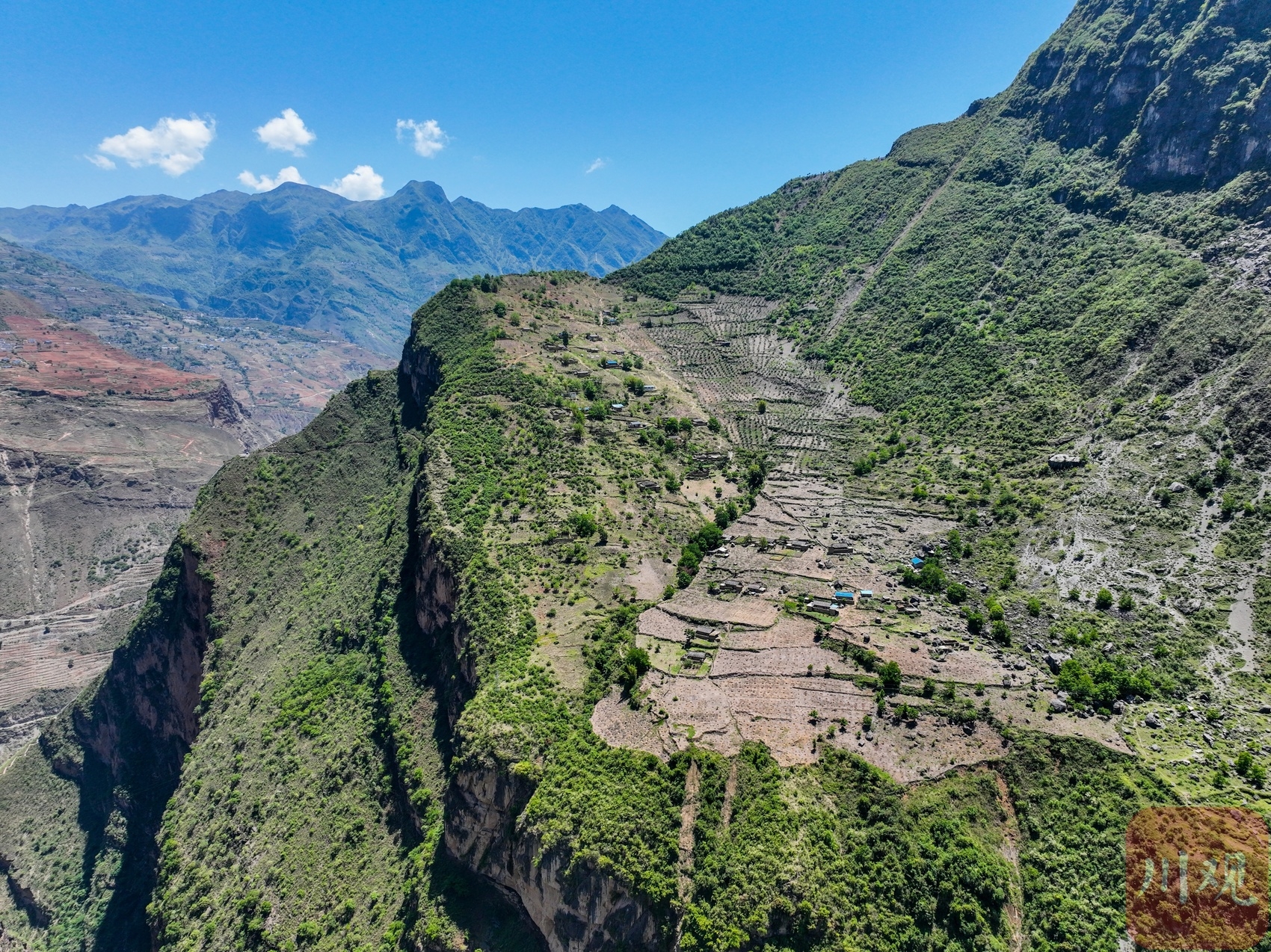 5月12日,四川在线记者再次登上“悬崖村”进行航拍。坐落于云端之上“悬崖村”,自然风光美轮美奂,宛若人间仙境。