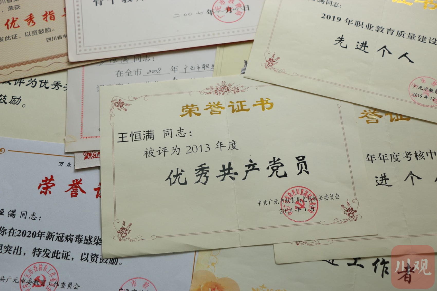 王恒满不断学习,担任教师工作16年,在教育局机关工作10年,他勤恳工作,业务能力强,工作业绩突出,现在所负责的职业教育与成人教育工作走在全省前列。家中还留着30多项他从业以来获得的荣誉,曾获得教育系统8次先进个人,4次优秀共产党员,2次优秀党务工作者。