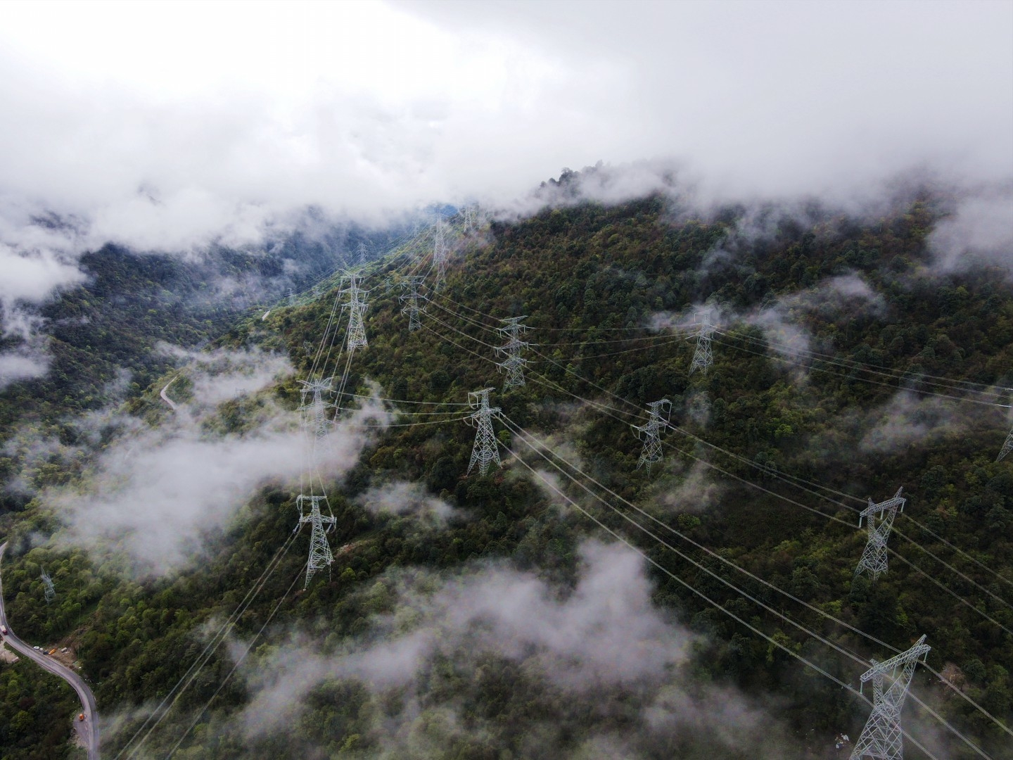 “天堑”二郎山,云雾穿梭在铁塔间。潘柱东 摄