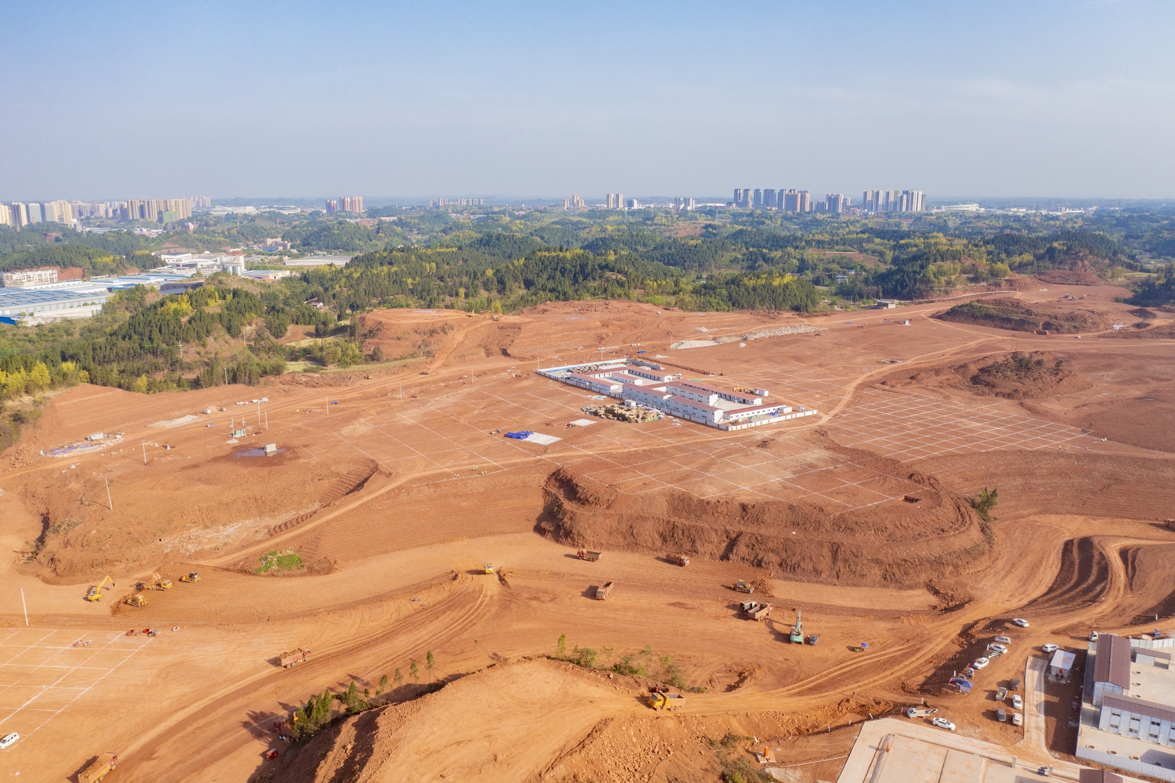 临空经济区三草湾智能制造产业园正在进行场平(吴昊江 摄)