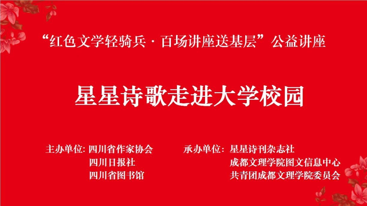 此次活动由四川省作家协会、四川日报社、四川省图书馆主办,《星星》诗刊杂志社、成都文理学院图文信息中心、共青团成都文理学院委员会承办,成都文理学院的300多名大学生聆听了这场讲座。
