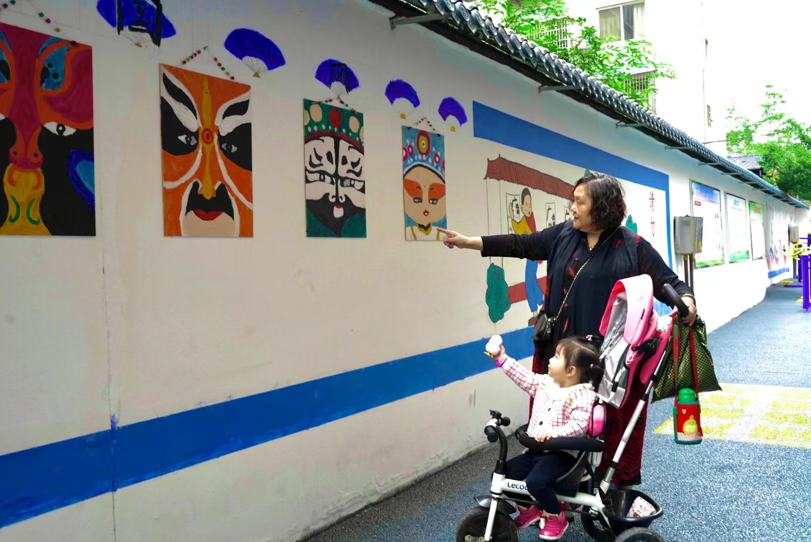 近日,大英县水晶城小区的墙壁彩绘吸引居民驻足观赏。 廖锦辉 摄