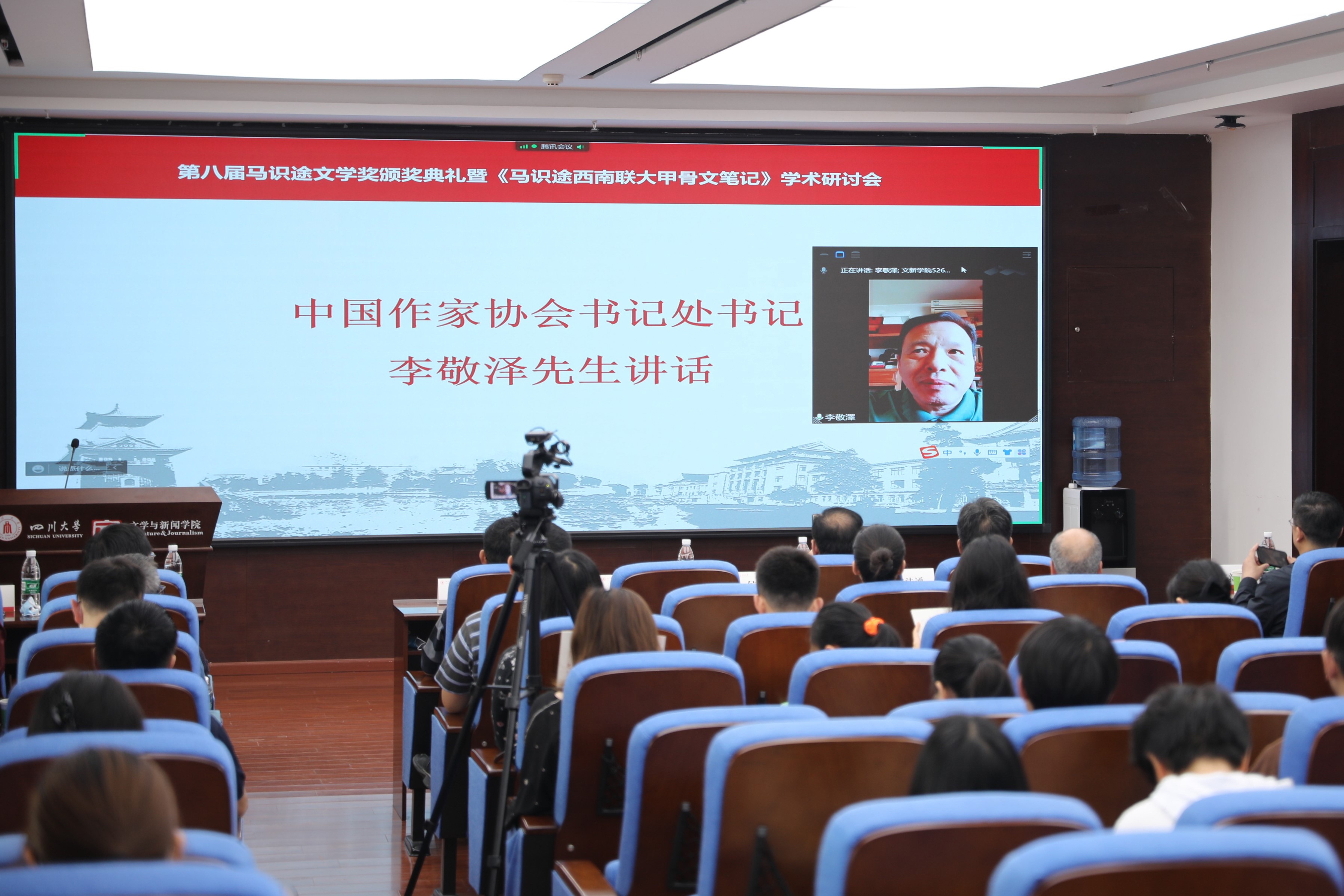 5月13日,第八届马识途文学奖颁奖典礼暨《马识途西南联大甲骨文笔记》学术研讨会在四川大学举行。中国作协副主席李敬泽,中国作协副主席、四川省作协主席阿来,四川省作协党组书记侯志明等通过线上或线下方式,参与本次颁奖典礼。