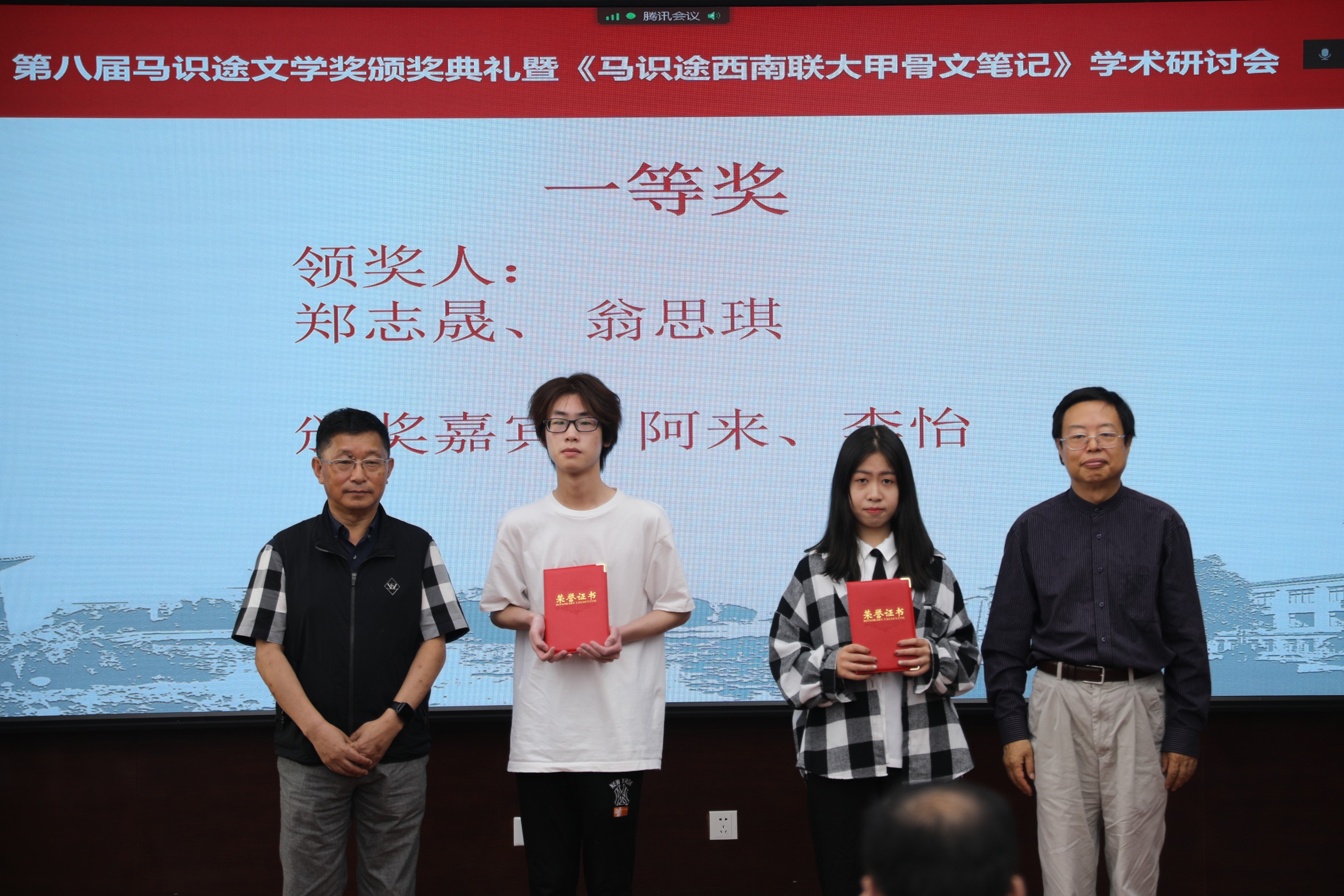 颁奖典礼上,108岁马识途通过视频形式寄语获奖青年学子