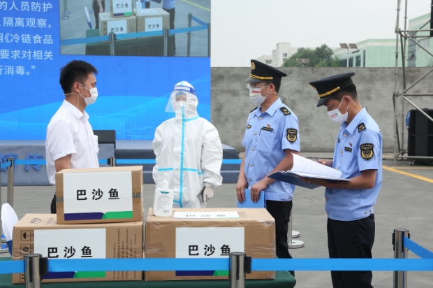 进口冷链食品疫情联防联控应急演练现场。图片由成都市市场监管局提供