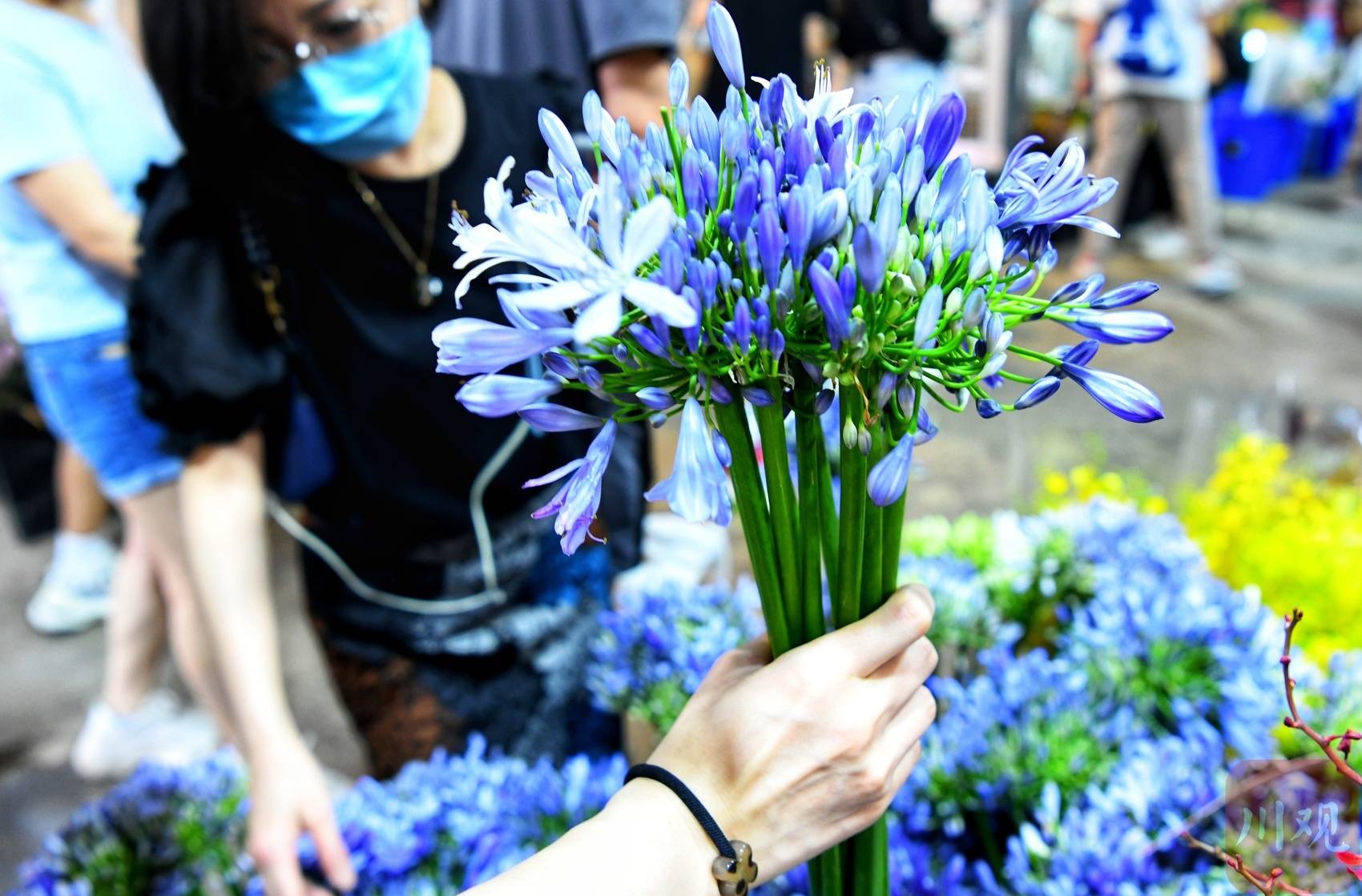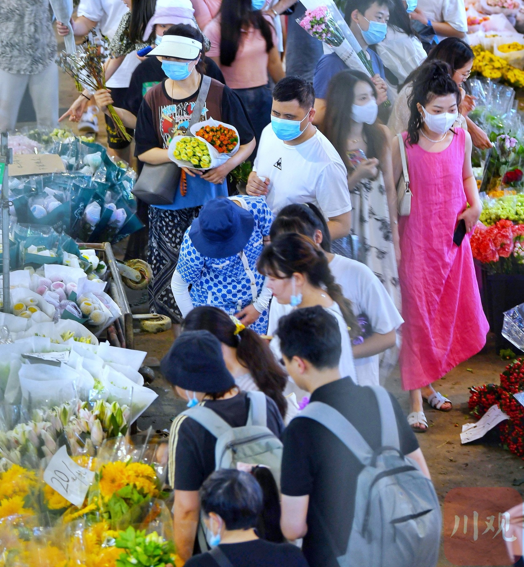 6月5日,正值端午假期,成都市三圣花乡的万福花卉产业园花香四溢,产业园内的鲜切花市场更是人头攒动。