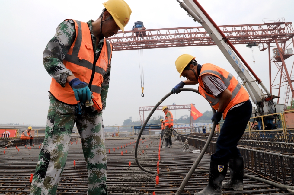 正在浇筑箱梁。许达 摄