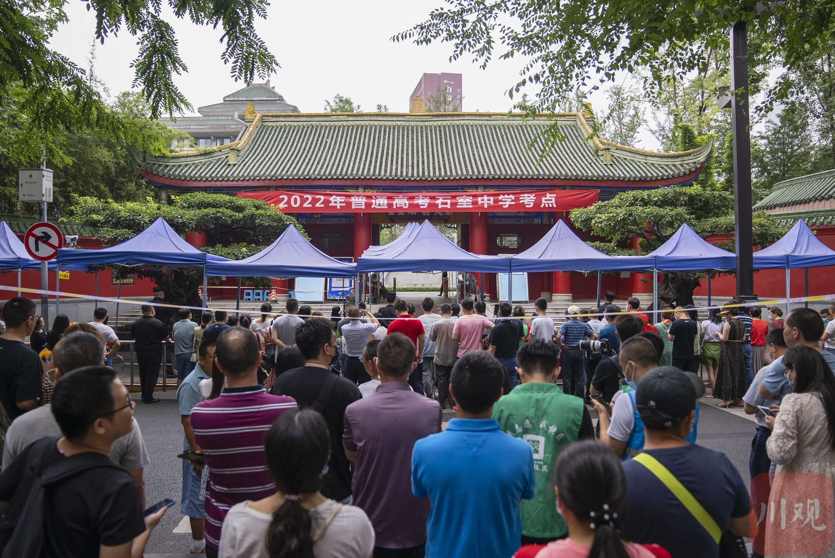 成都石室中学(文庙校区)高考考点外等待的考生家长