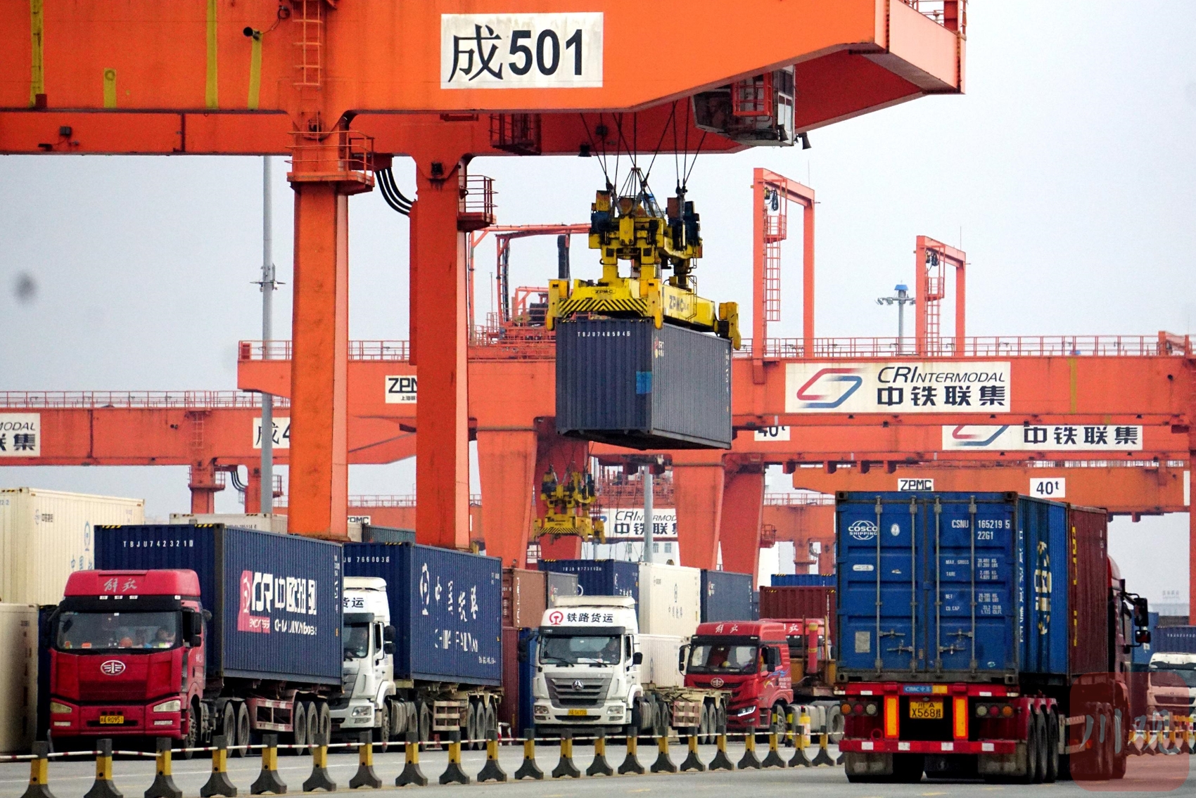 5月31日,满载4000万元货物的成都中欧班列南通道“欧洲通”公共班列首发,铁路工作人员正在装运集装箱。