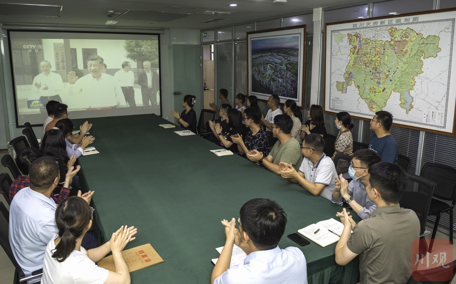6月9日晚,四川天府新区公园城市建设局党员干部收看新闻联播。