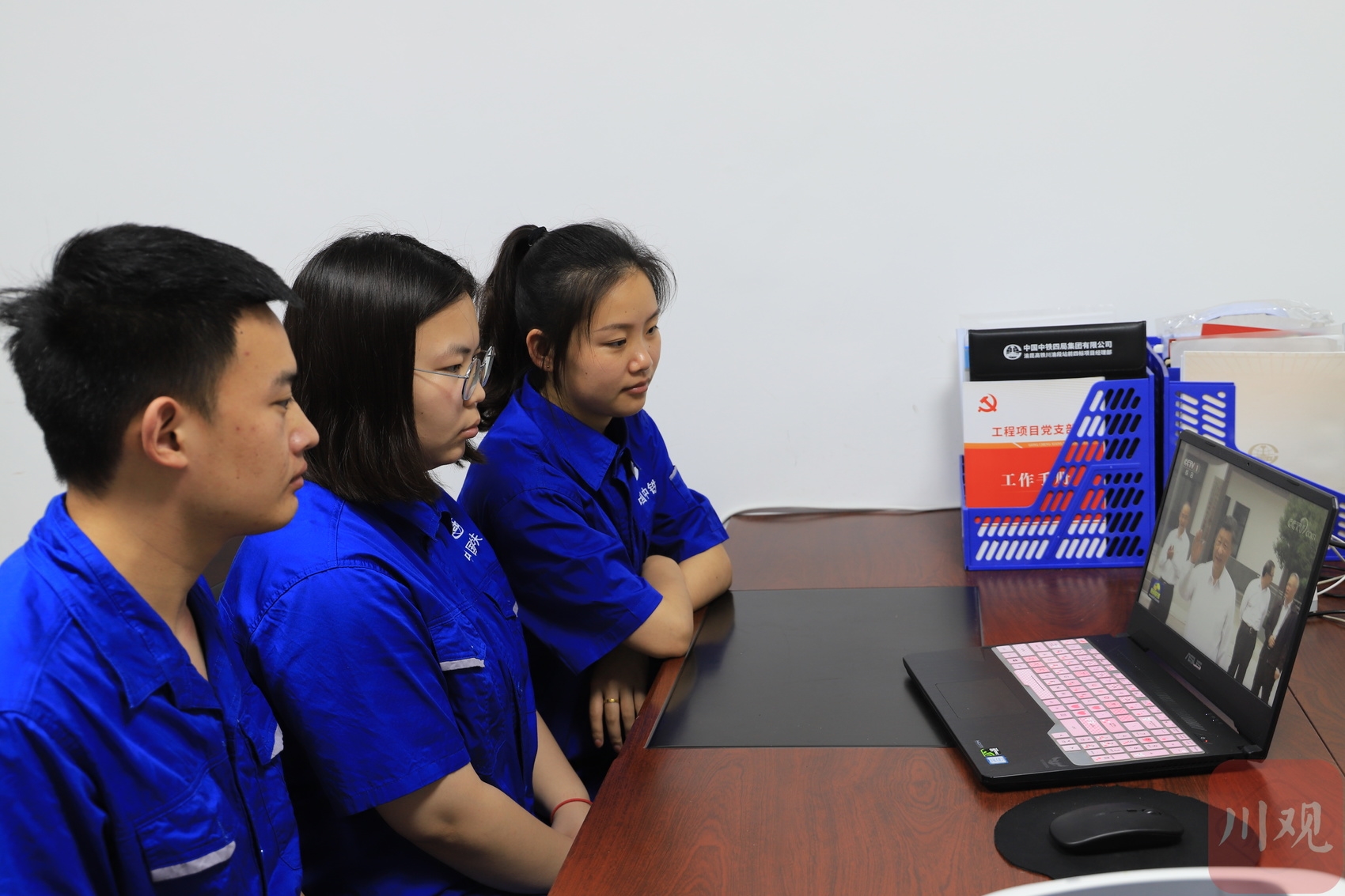 6月9日晚,在位于泸州市龙马潭区的渝昆高铁川渝段沱江特大桥项目工地内,中铁四局的青年职工正在收看新闻联播。