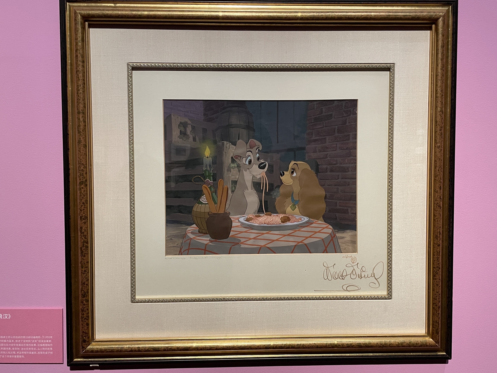 带有沃尔特·迪士尼亲笔签名的《小姐与流浪汉》赛璐珞(美国,1995年)