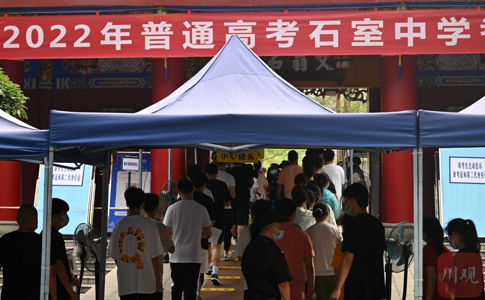 2022年高考期间,考生排队进入考场。四川在线资料图片