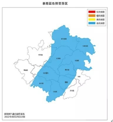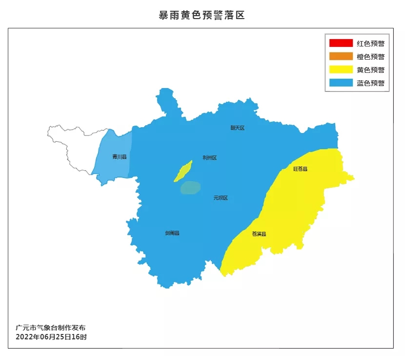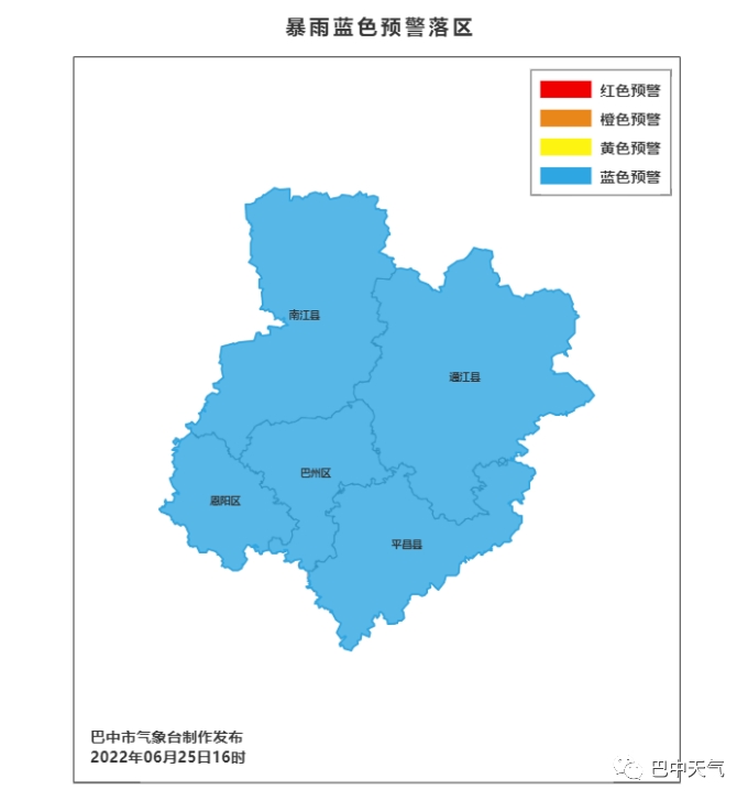四川省气象台6月25日16时00分发布暴雨蓝色预警: