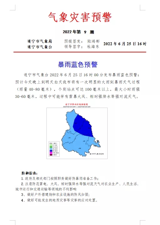 ▲ 遂宁市气象台发布暴雨蓝色预警