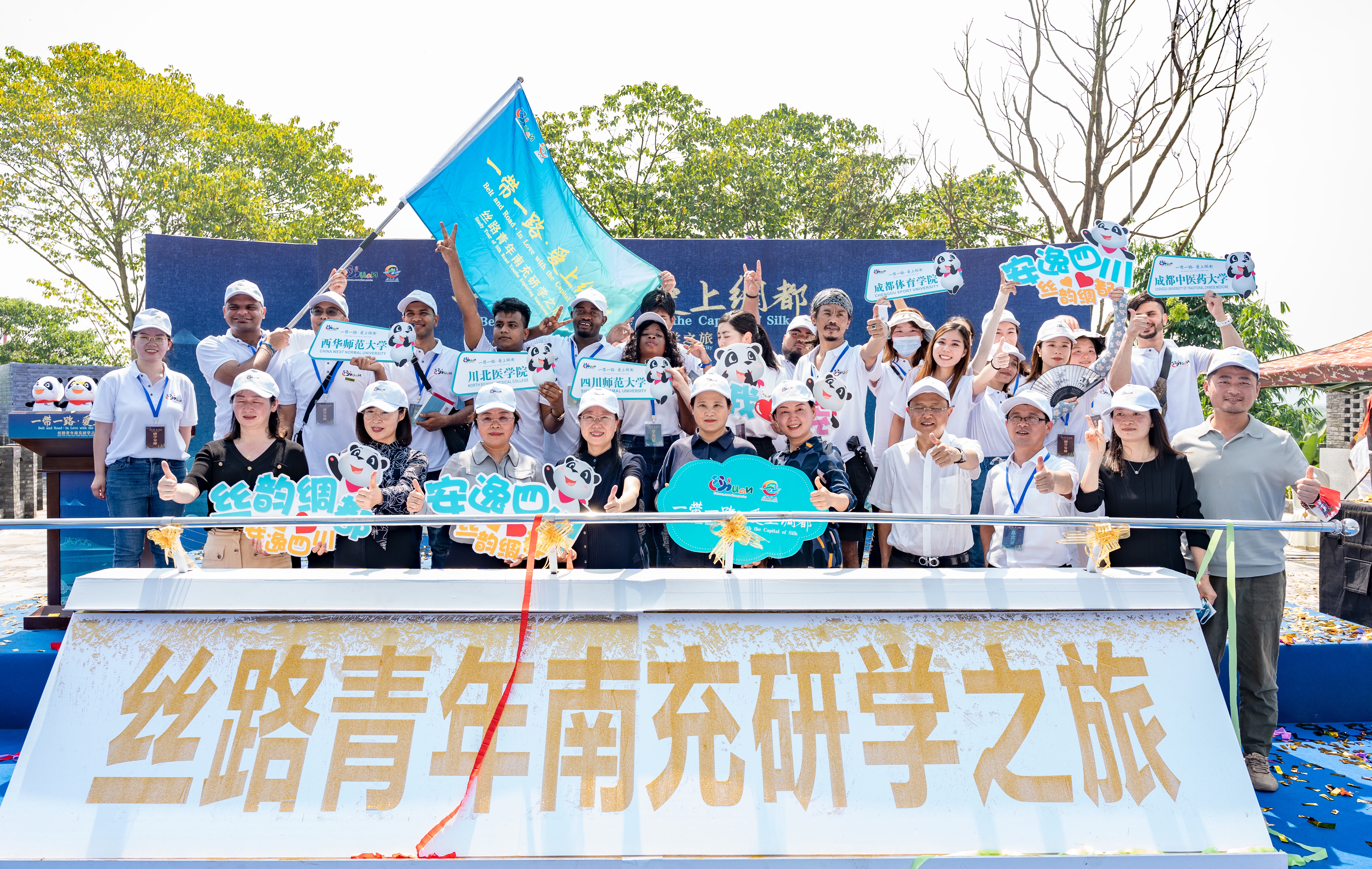 7月5日,由四川省文化和旅游厅主办的“一带一路·爱上绸都”——丝路青年南充研学之旅在南充市六合丝博园拉开帷幕,四川省文化和旅游厅有关负责人现场为“一带一路·爱上绸都”丝路青年南充研学团授旗,来自马来西亚等“一带一路”沿线国家的留学生共同组成丝路青年研学团,前往南充市高坪区品味千年绸都文化。