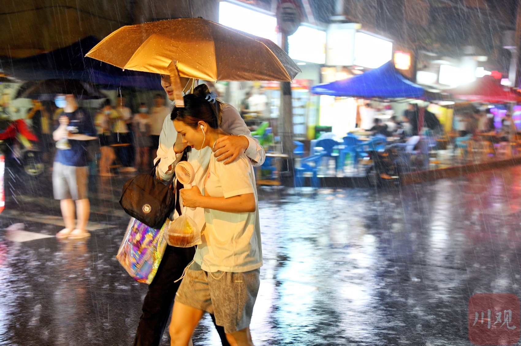 7月10日晚上20点,闷热难耐的成都市区终于开始普降阵雨,豆大的雨点急骤落下,让持续“高烧不退”的气温终于有所回降。