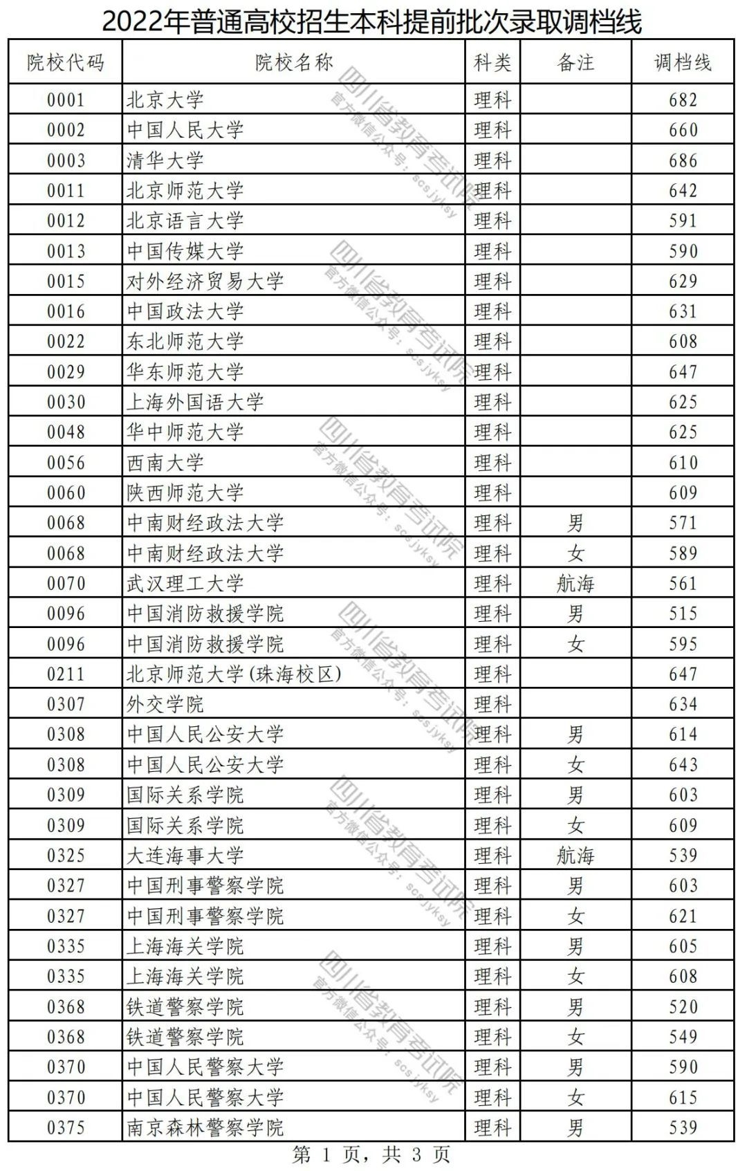 我省2022年普通高校本科提前批次正在投档录取中,现将在川招生普通高校录取调档线公布如下。