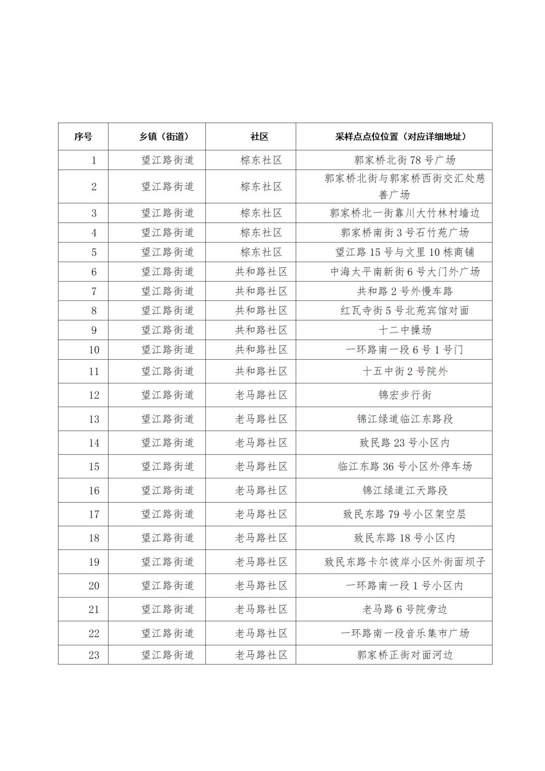 附件:武侯区全员核酸检测点位