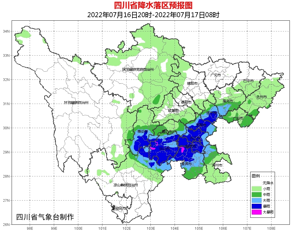 四川省气象台7月16日16时继续发布暴雨蓝色预警: