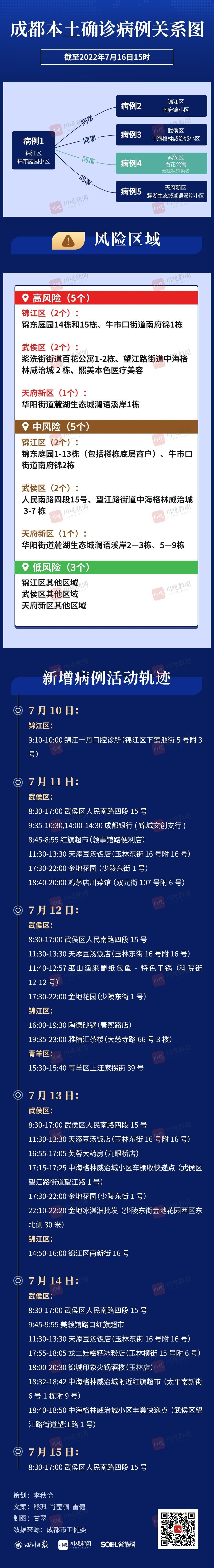 7月16日,成都市卫健委官方微博发布消息: 7月16日0-15时,成都新增本土确诊病例3例,无症状感染者1例。截至16日15时“0715”疫情累计报告本土确诊病例4例,本土无症状感染者1例。