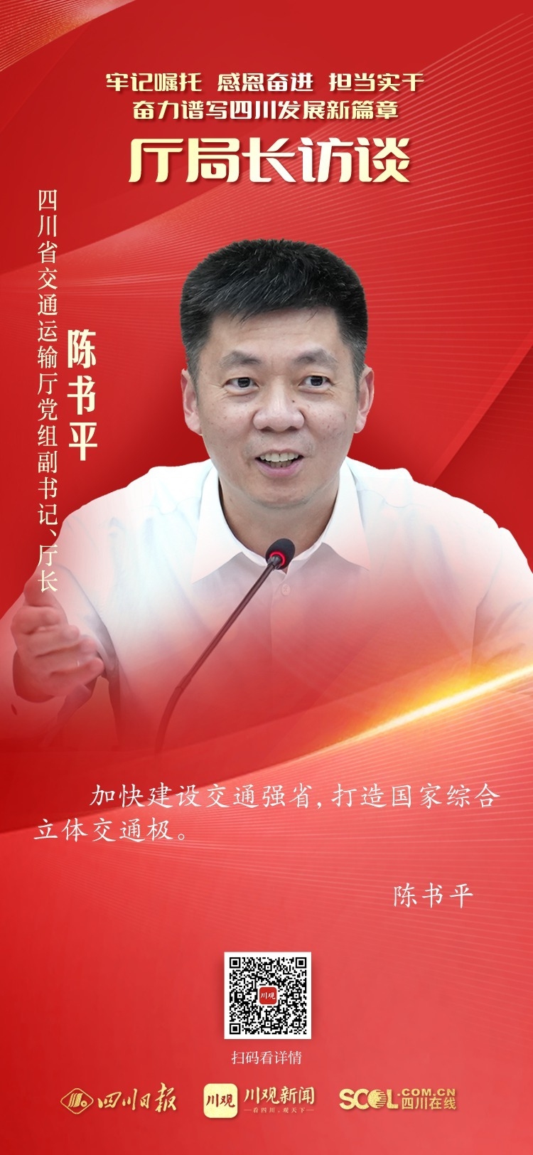 陈书平:我们倍感振奋,也深感责任重大。今后五年,我们将以交通强省建设为引领,着力打造国家综合立体交通极,当好全面建设社会主义现代化四川开路先锋。