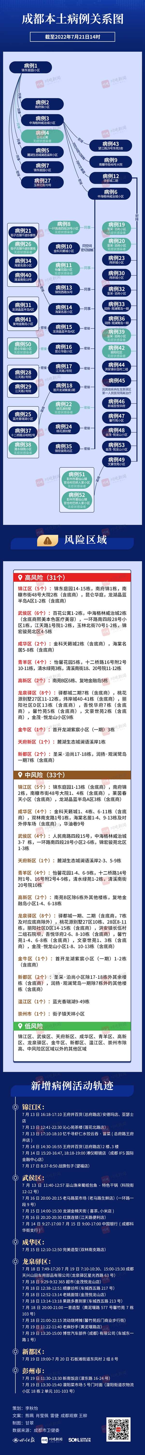 7月21日下午,成都市卫健委官方微信发布消息:7月21日0-14时,成都市新增本土确诊病例1例,本土无症状感染者2例,均为隔离管控中的密切接触者。截至21日14时,成都市本起疫情累计报告本土确诊病例40例,本土无症状感染者13例。