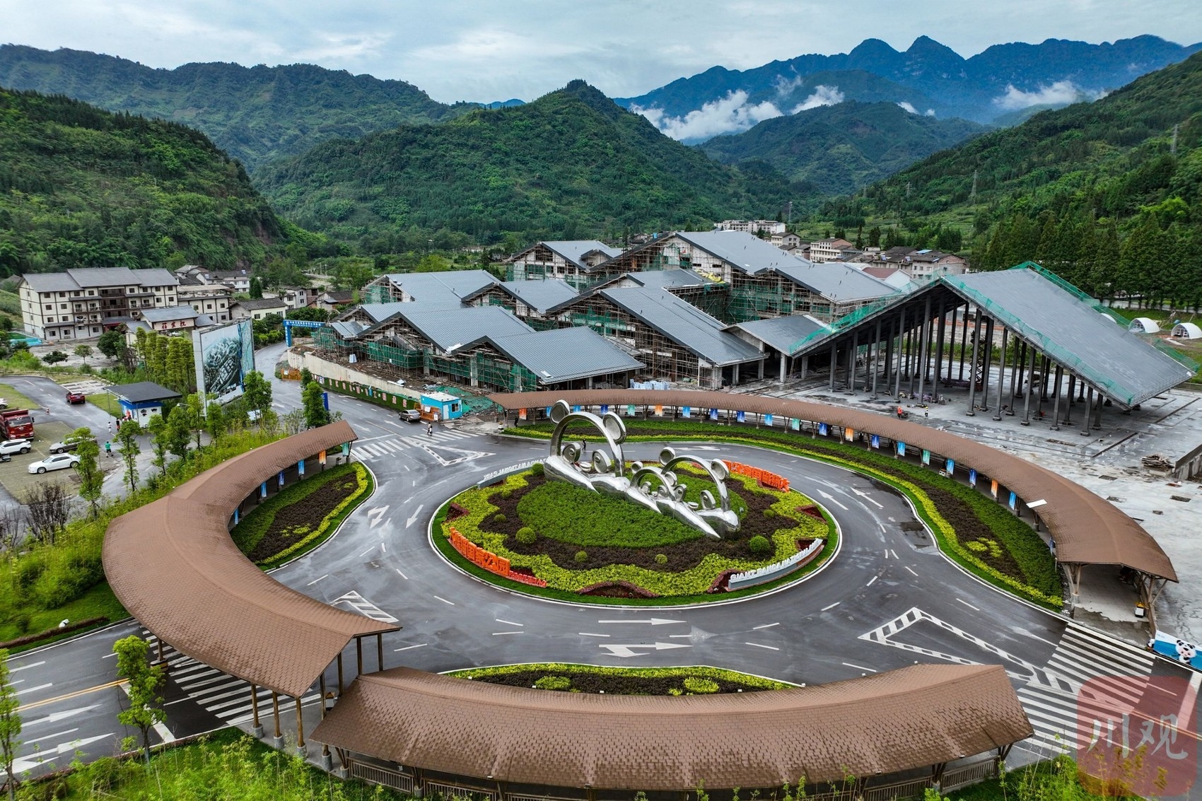 除了村里的民宿酒店,荥经县在万年村布局的熊猫会客厅项目也进展顺利,已完成风雨廊桥、金属屋面、隔墙砌筑等建设工作。为熊猫会客厅配套的温泉工程,已完成钻探深度1171米。按照计划,熊猫会客厅将在年底竣工。