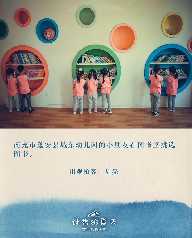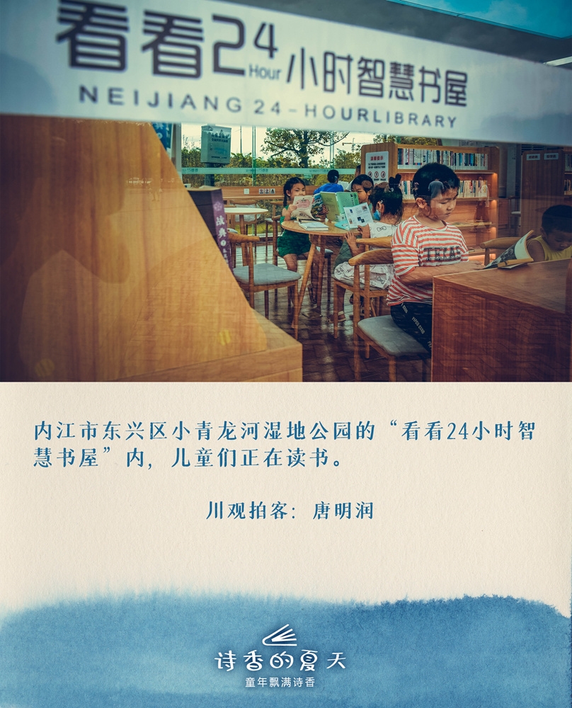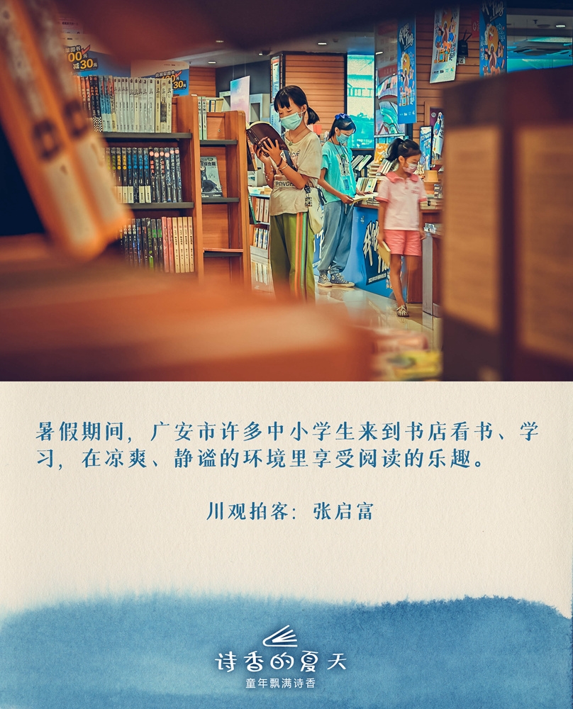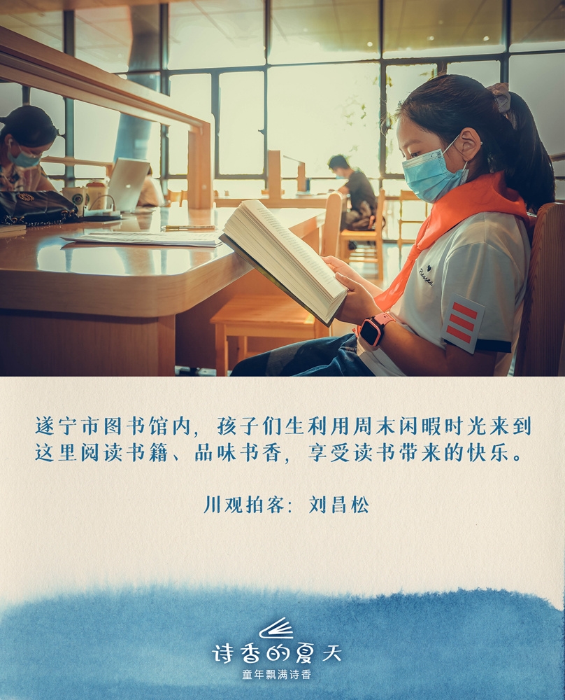暑假里,不少家长给予自己孩子充分的空间和时间,鼓励孩子们走进图书馆、书店,与中华经典古诗词与好书为友,与经典对话,与博览同行,在古诗文赏析与积累中开拓视野,提高文学修养,享受到读书的快乐,让诗香飘满他们的童年。