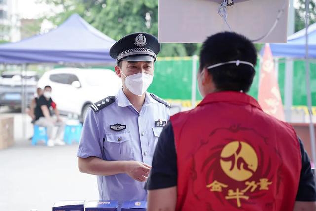 “邓哥,把防护服拉好,面罩我再给你弄一下。”“小杨,你也是,我再给你检查一下。”7月23日晚,民警邓楠和辅警杨益亮着手机手电筒,相互检查和提醒。随后,他们和医护人员、街道党员志愿者进入高风险封控区核心区域逐户逐层开展入户核酸检测工作,直到24日凌晨2点,369人全部完成核酸检测。