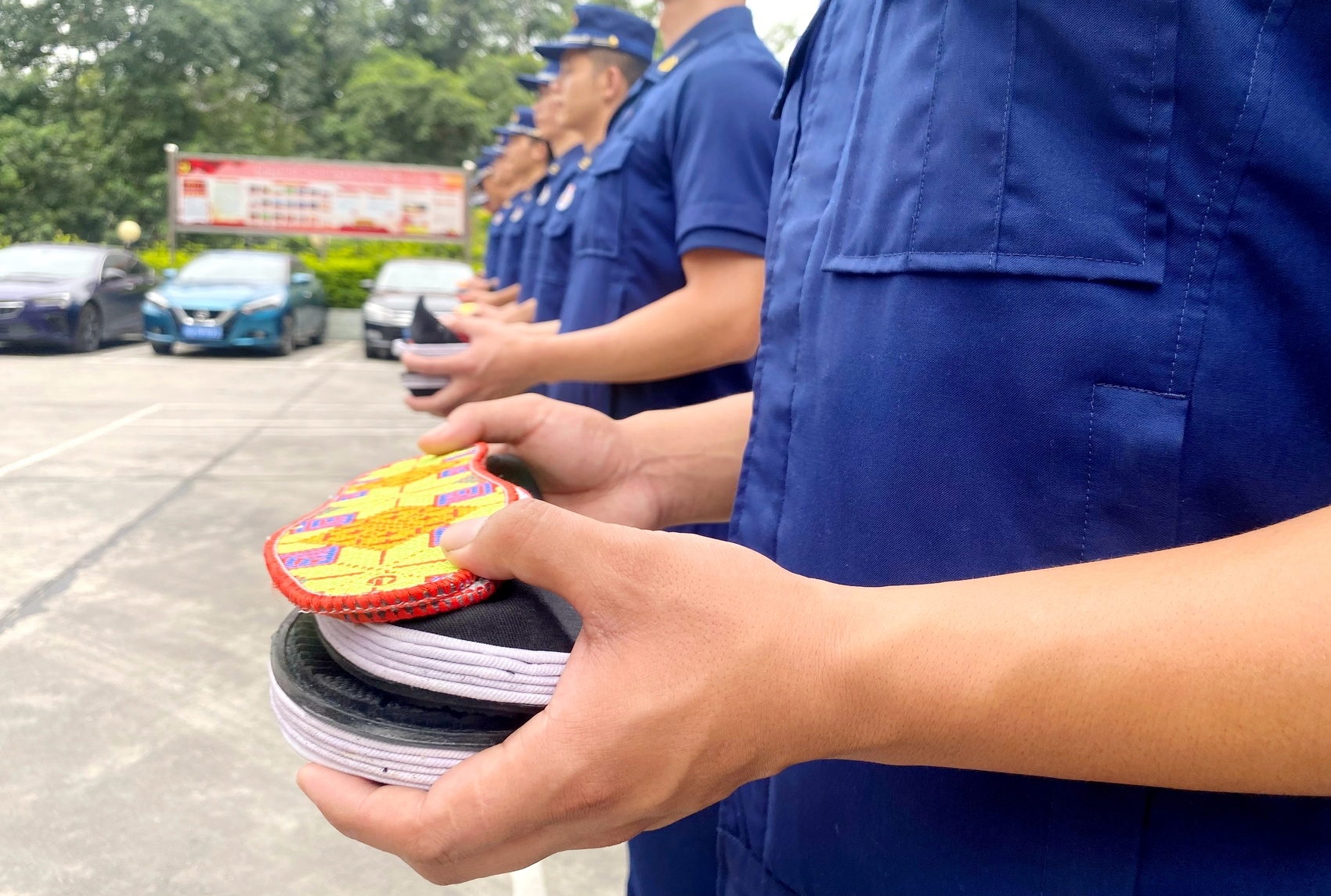 消防员收到爱心布鞋、鞋垫。湛璐霜 摄
