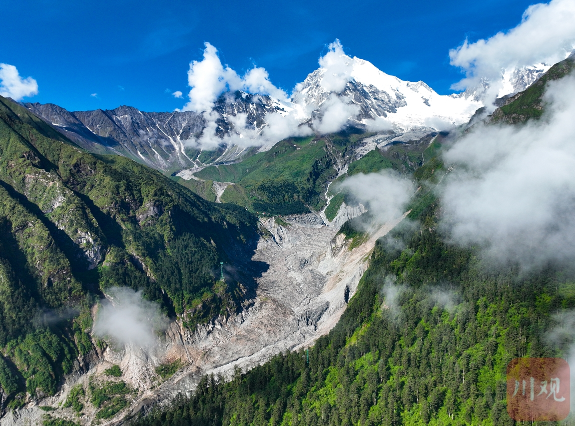 贡嘎山是横断山区的最高峰,有“蜀山之王”的美誉,其峡谷高差世所罕见,从东坡大渡河谷底至主峰峰顶,水平距离不过29公里,相对高差达6500米。