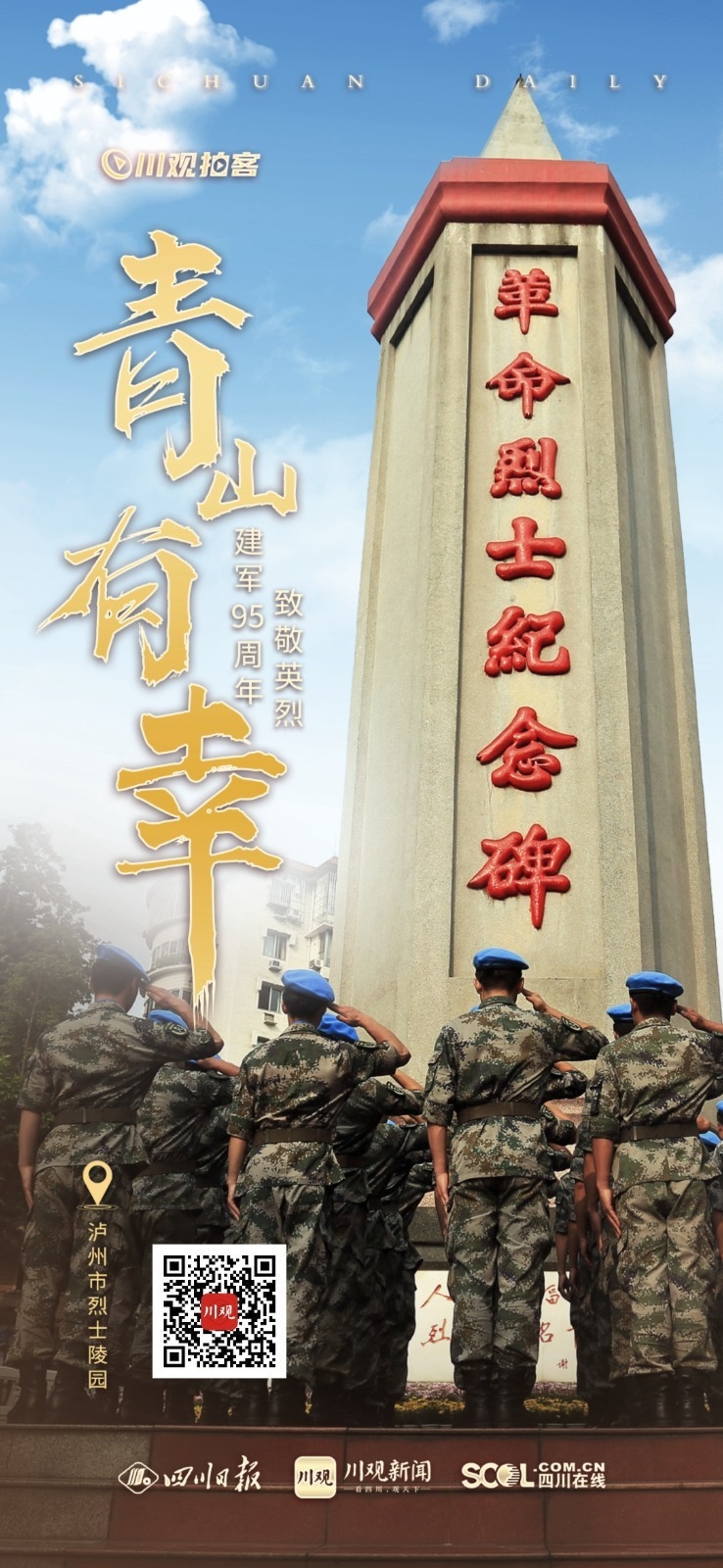 在泸州烈士陵园,部队官兵代表在烈士纪念碑前缅怀烈士,向无数英烈致以深深的敬意。