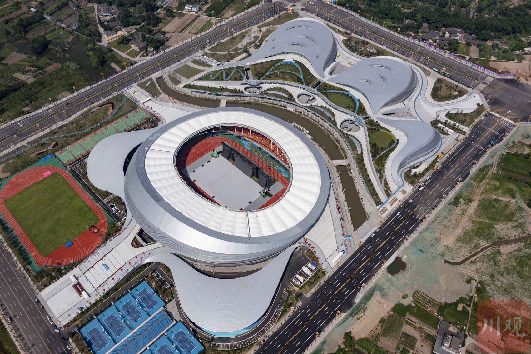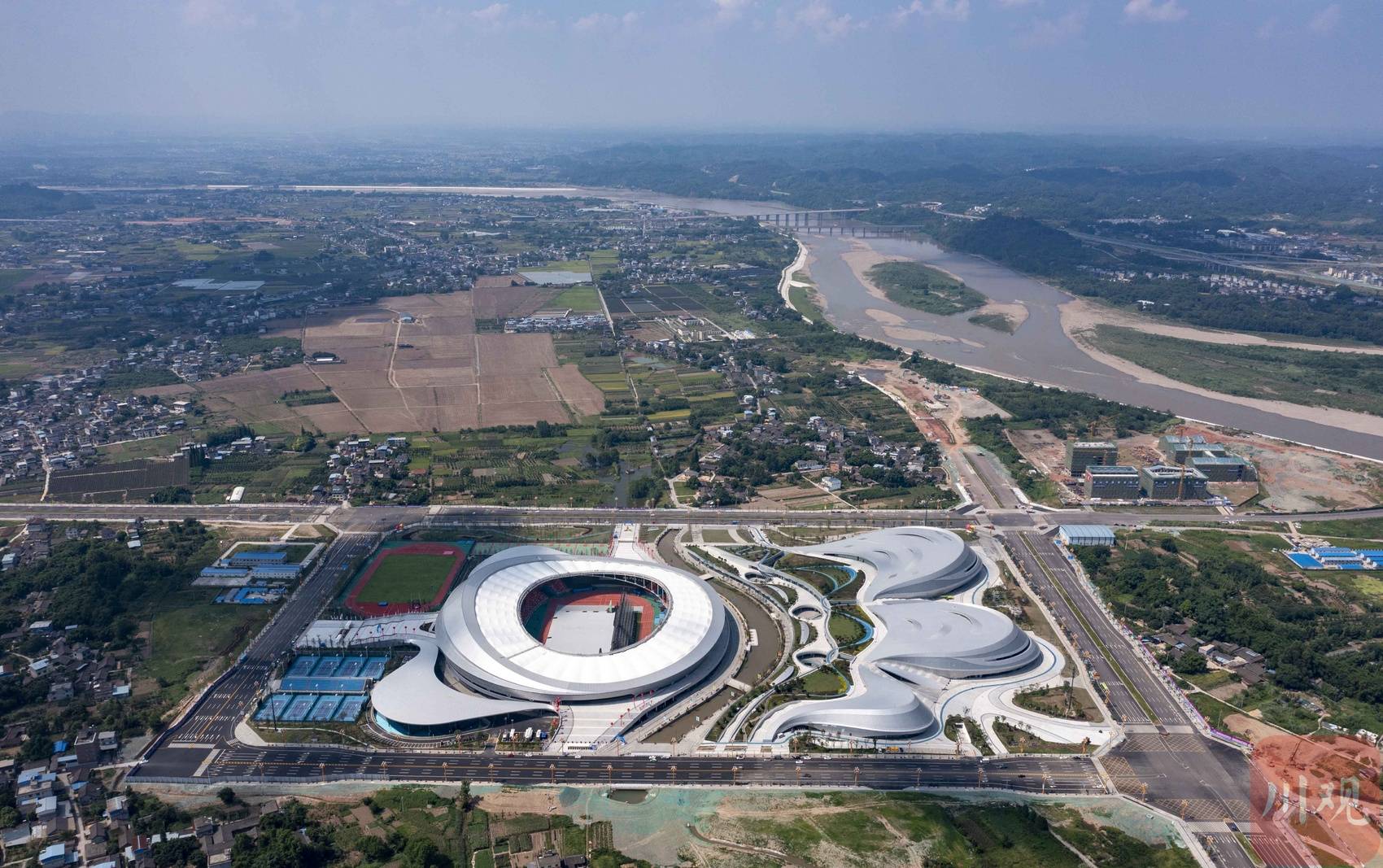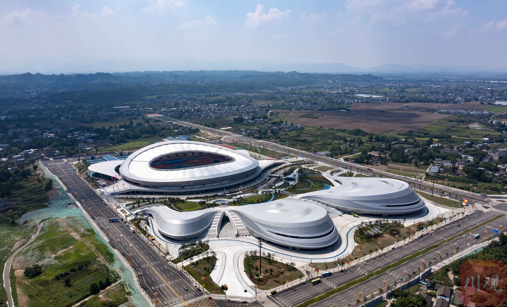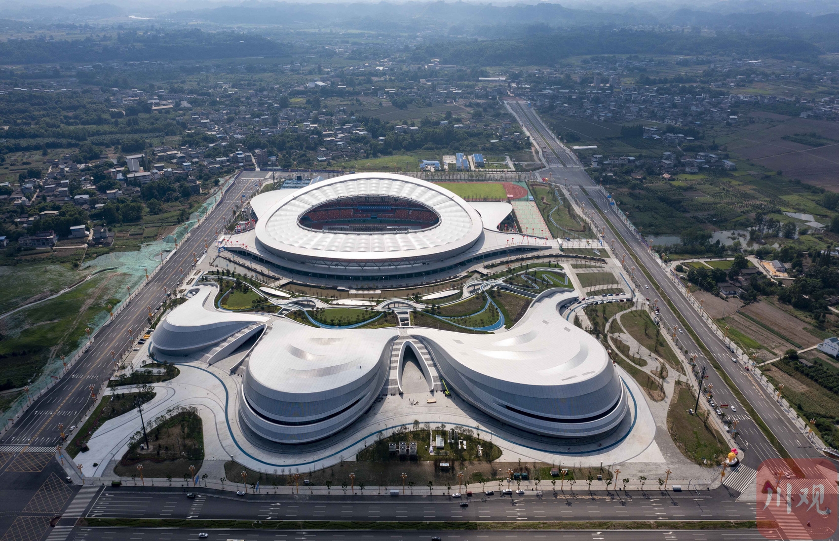 新建设和改造的28个省运会体育场馆已全部投用,这是省运会开幕式主场馆乐山市奥林匹克中心航拍图。