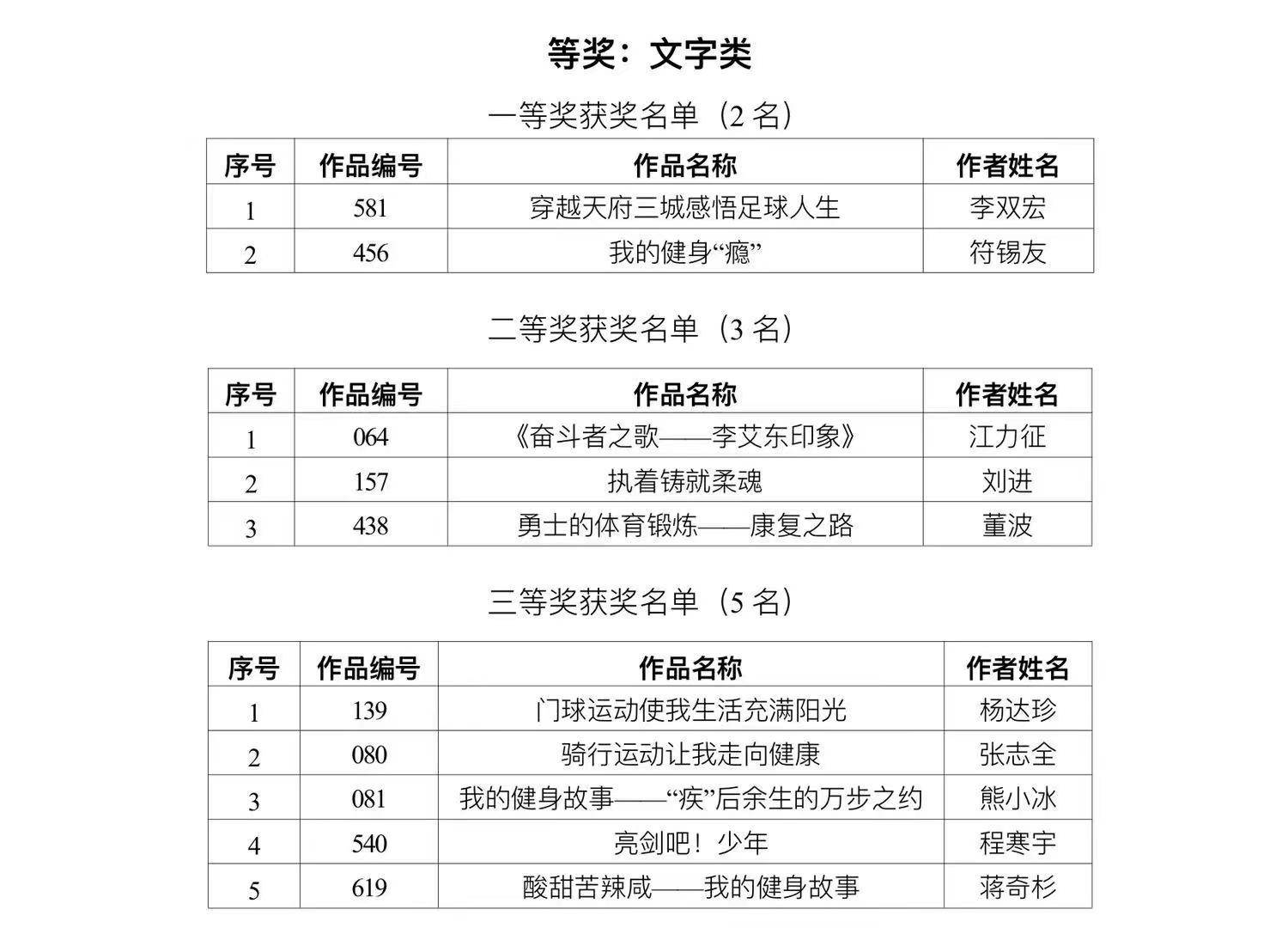 8月8日,经过初评、大众点赞评审和专家评审,由四川省体育局主办,四川日报全媒体体育工作室协办的2022年四川省全民健身“我的健身故事”有奖征集活动获奖名单正式出炉。