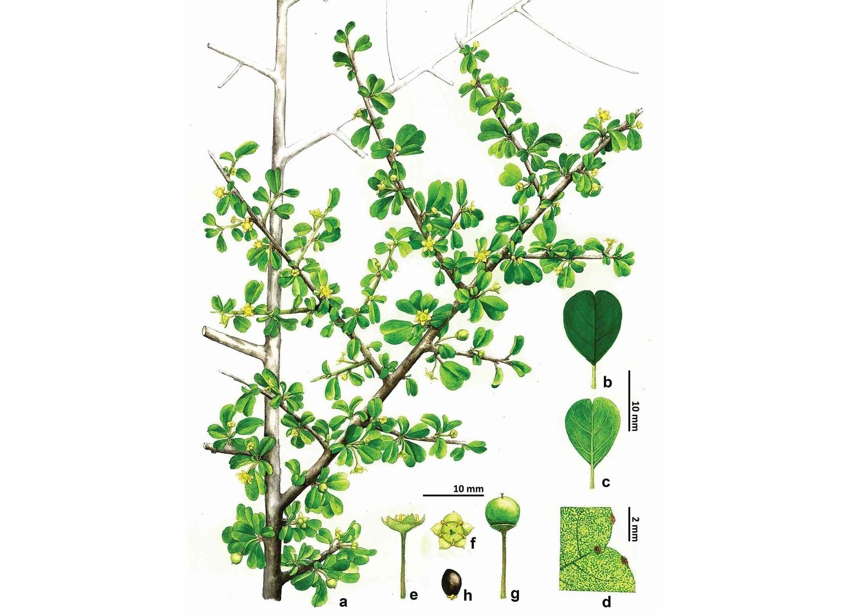 近日,中国科学院成都生物研究所与江西农业大学科研人员在生态学期刊《Ecosystem Health and Sustainability》上刊发论文,介绍了一个鼠李科植物新种旱谷蛇藤(拉丁学名:Colubrina zhaoguangii)。同时,研究人员还根据花果形态特征和分子遗传证据讨论了其与近缘种的亲缘关系,并根据旱谷蛇藤的分布范围、植株数量和受干扰程度,建议将旱谷蛇藤评估为易危物种。