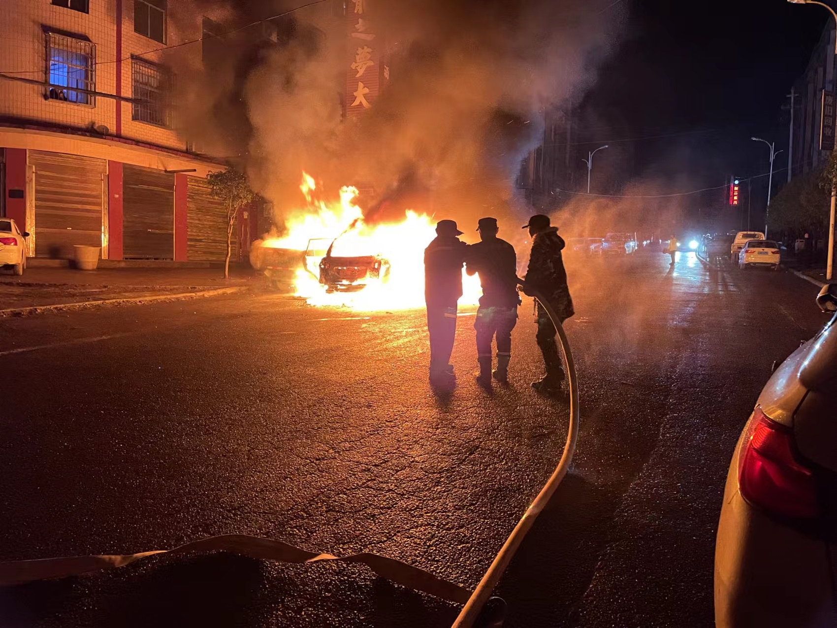 就在捕完蛇的那天晚上,8月3日凌晨,朱成春又接到电话,龙山镇上有一处民房着火,12名救援队员立即出动,经过40分钟奋战,大火被扑灭。