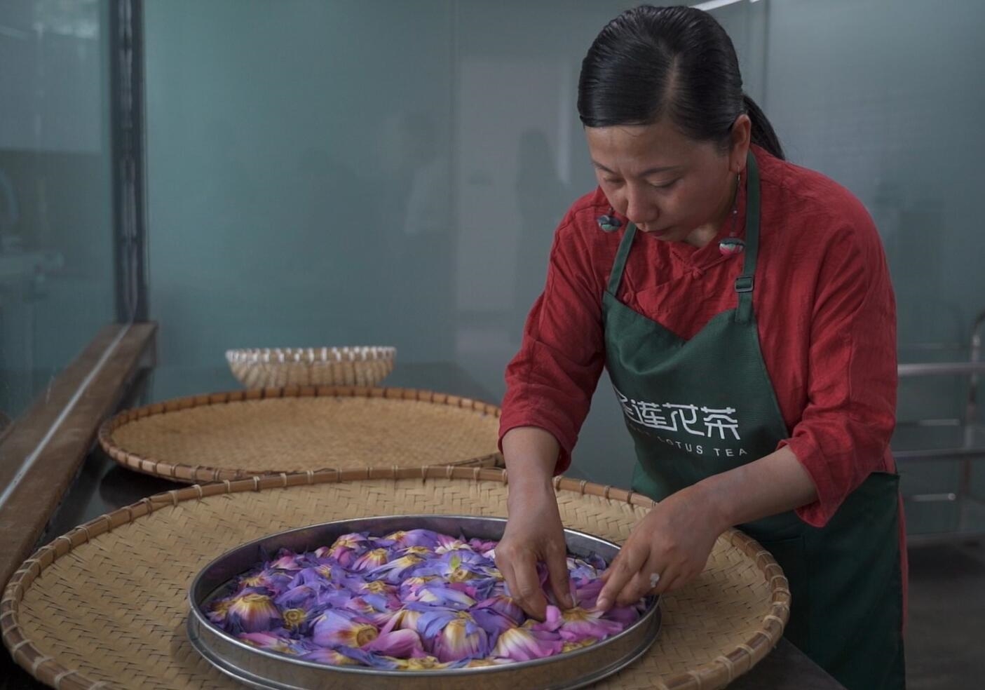 “从鲜花变茶品,也是经过了多次实验。”李梅说,“莲花娇嫩,不能高温晒、烤、烘,花朵数量、时间长短、温度高低、风速大小,都制约着花茶的色泽、形态、口感。”在尝试冷干、烘干等多种工艺后,总结上百次实验数据后,最终掌握了稳定的技术。