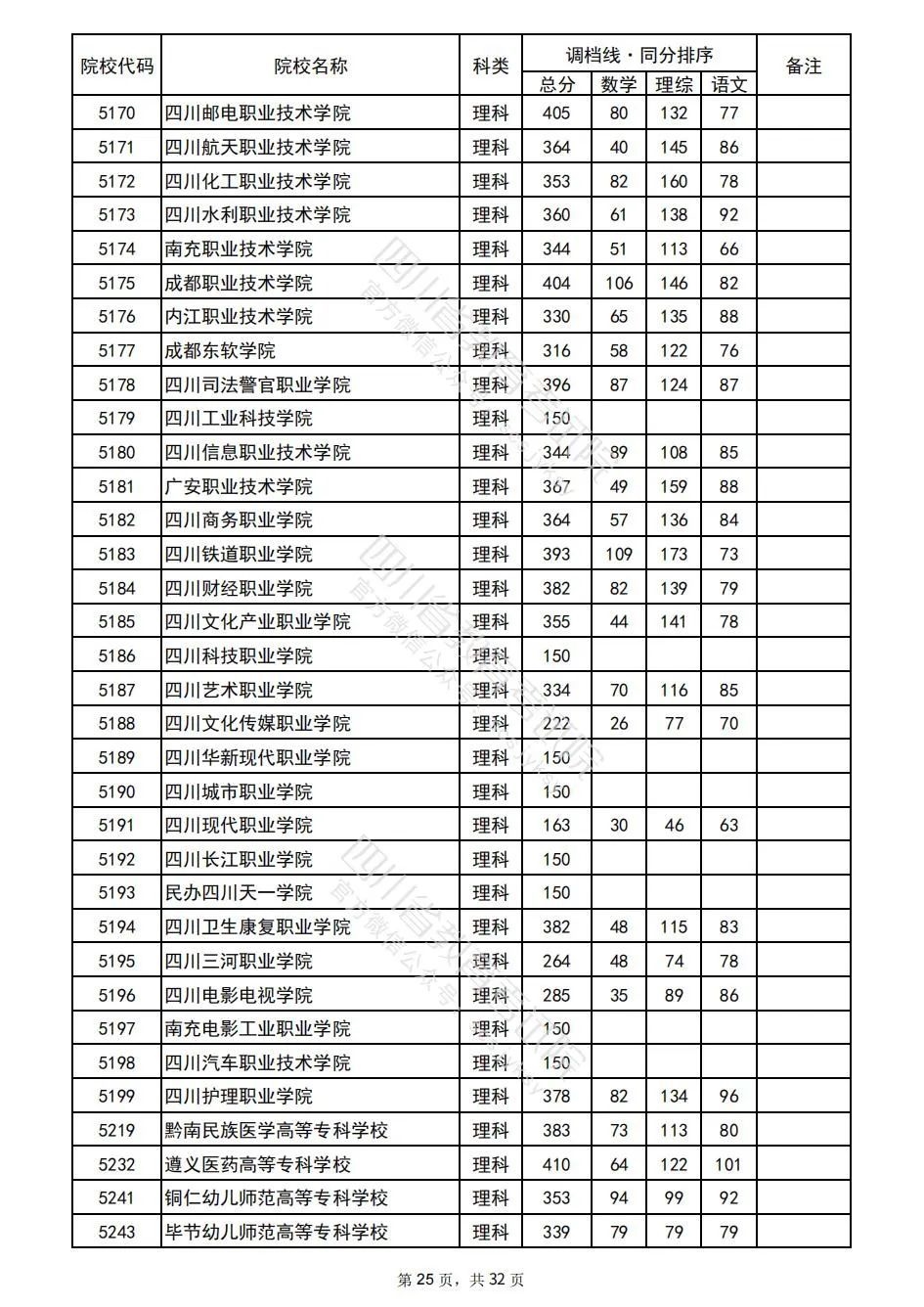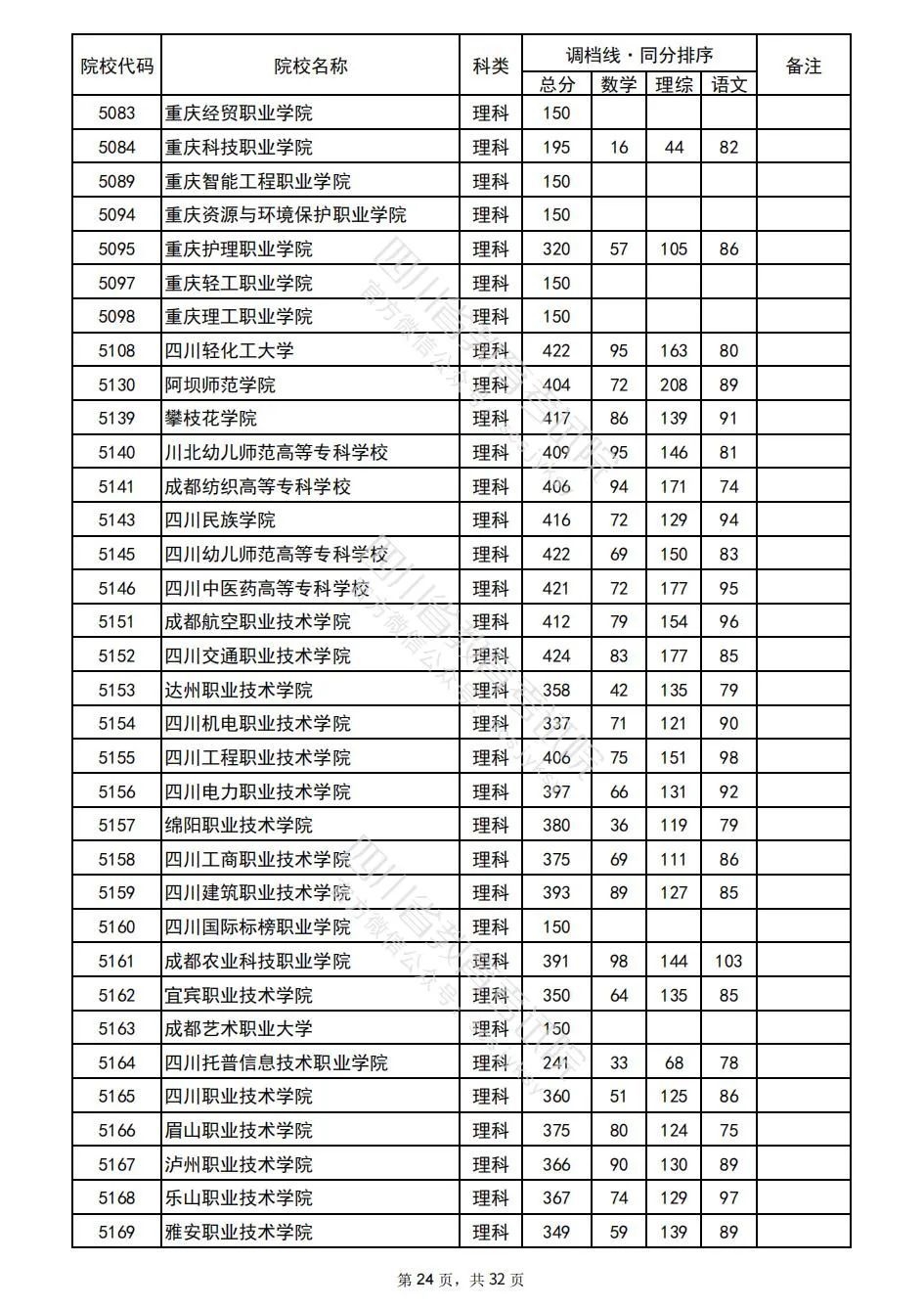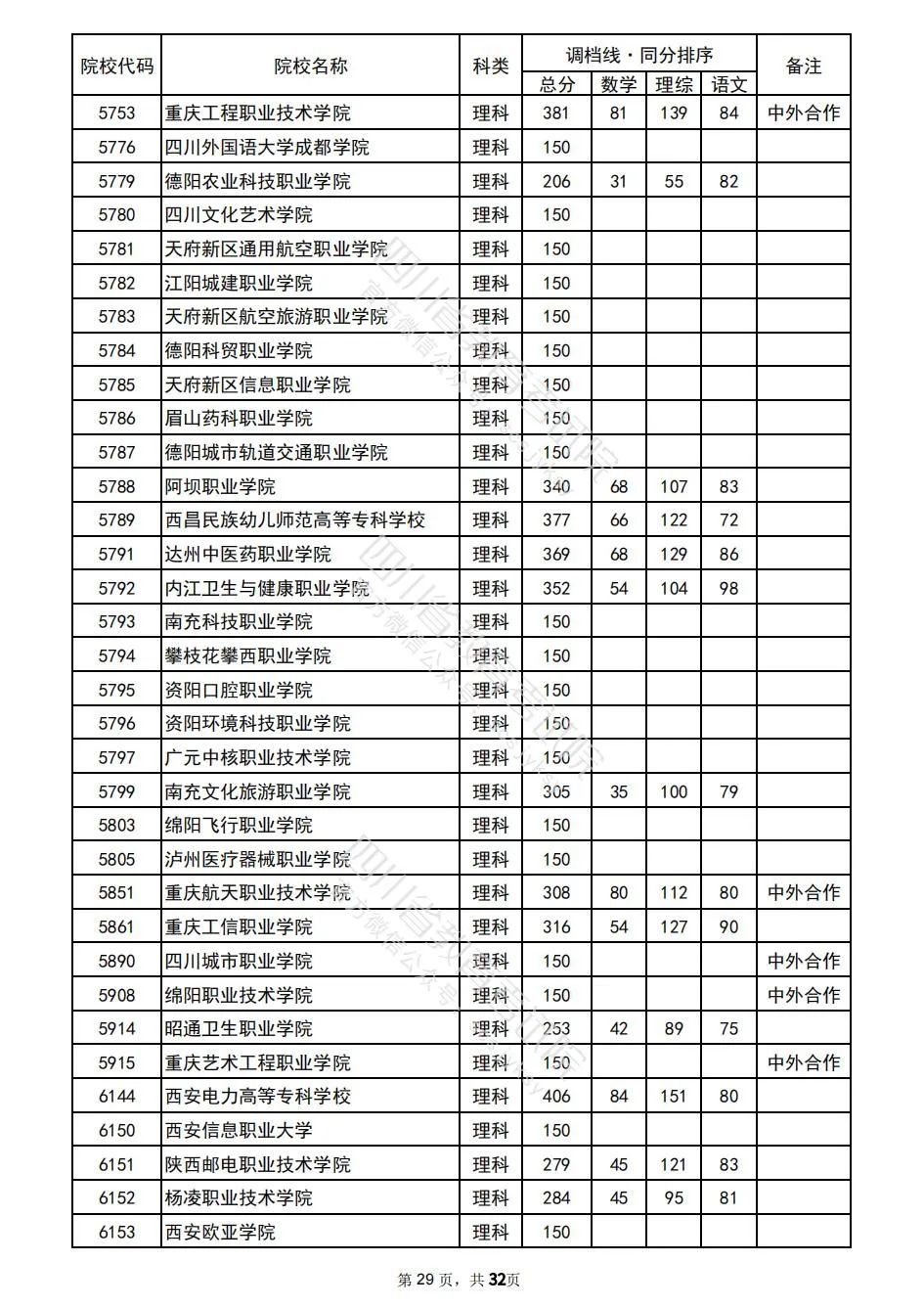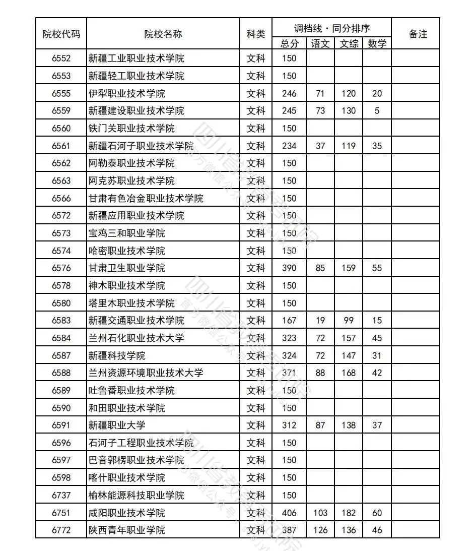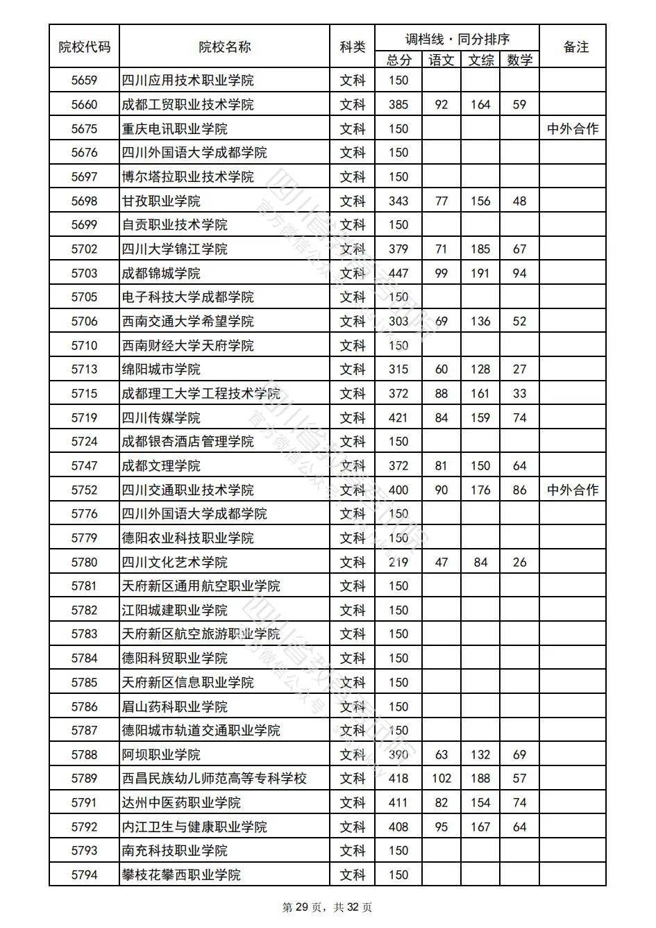 2022年普通高校在川招生专科批院校录取调档线出炉